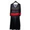 Abito da sera in chiffon di seta color nero, con inserti di crêpe di seta color rosso, decorato da fasce smerlate a pois d'argento e intervallate da orli di pasta di corallo. Epoca 1924