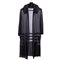 Abito a mantella in crepe di seta color nero, con decorazioni geometriche ottenute dallo sfilamento del tessuto. Collo arricciato a bavero molto ampio. Epoca 1925