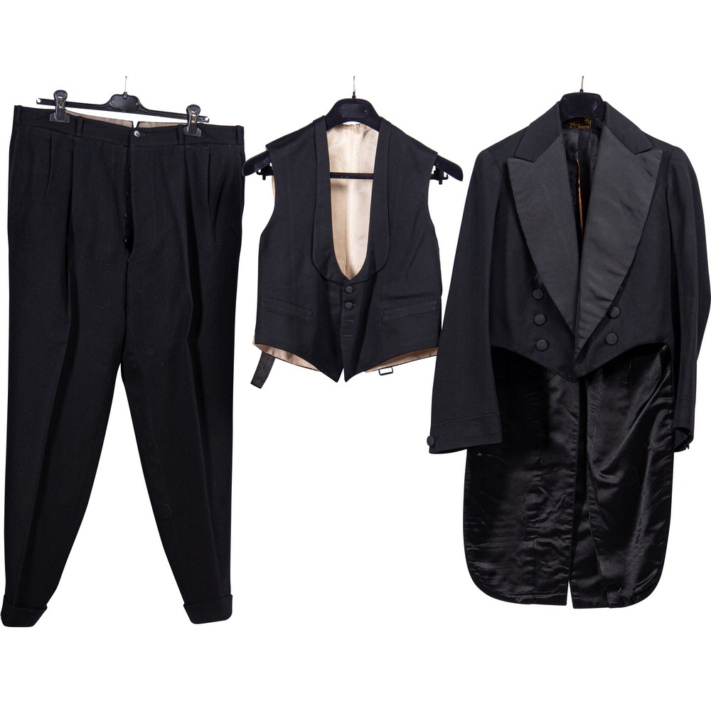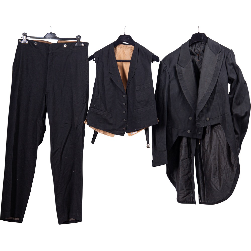 Due Frac in tre pezzi, giacca, pantalone e gilet, panno lana nero.