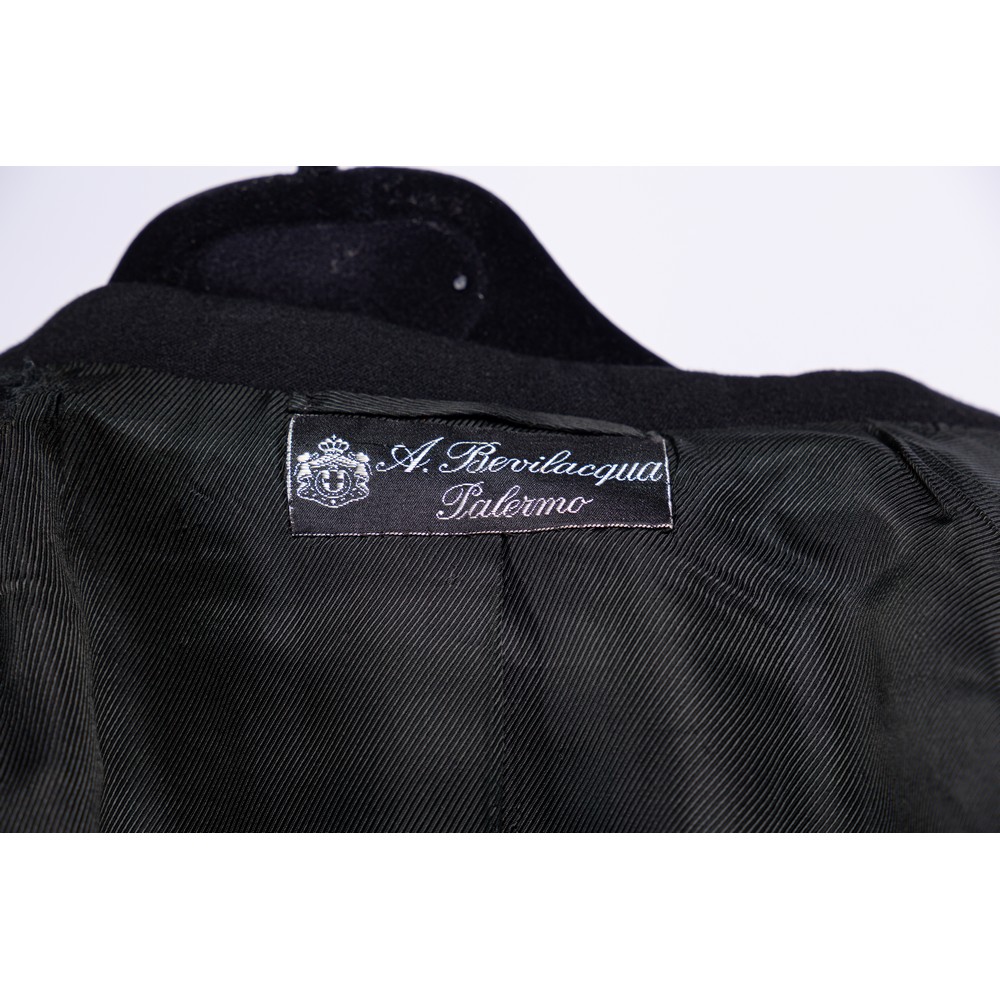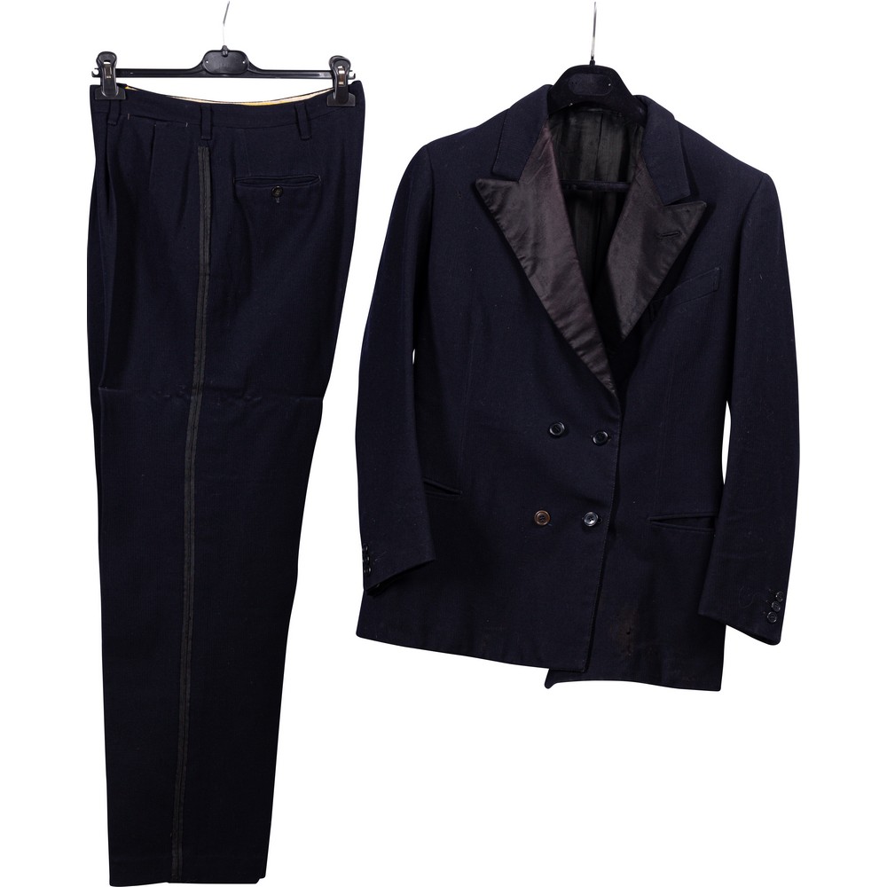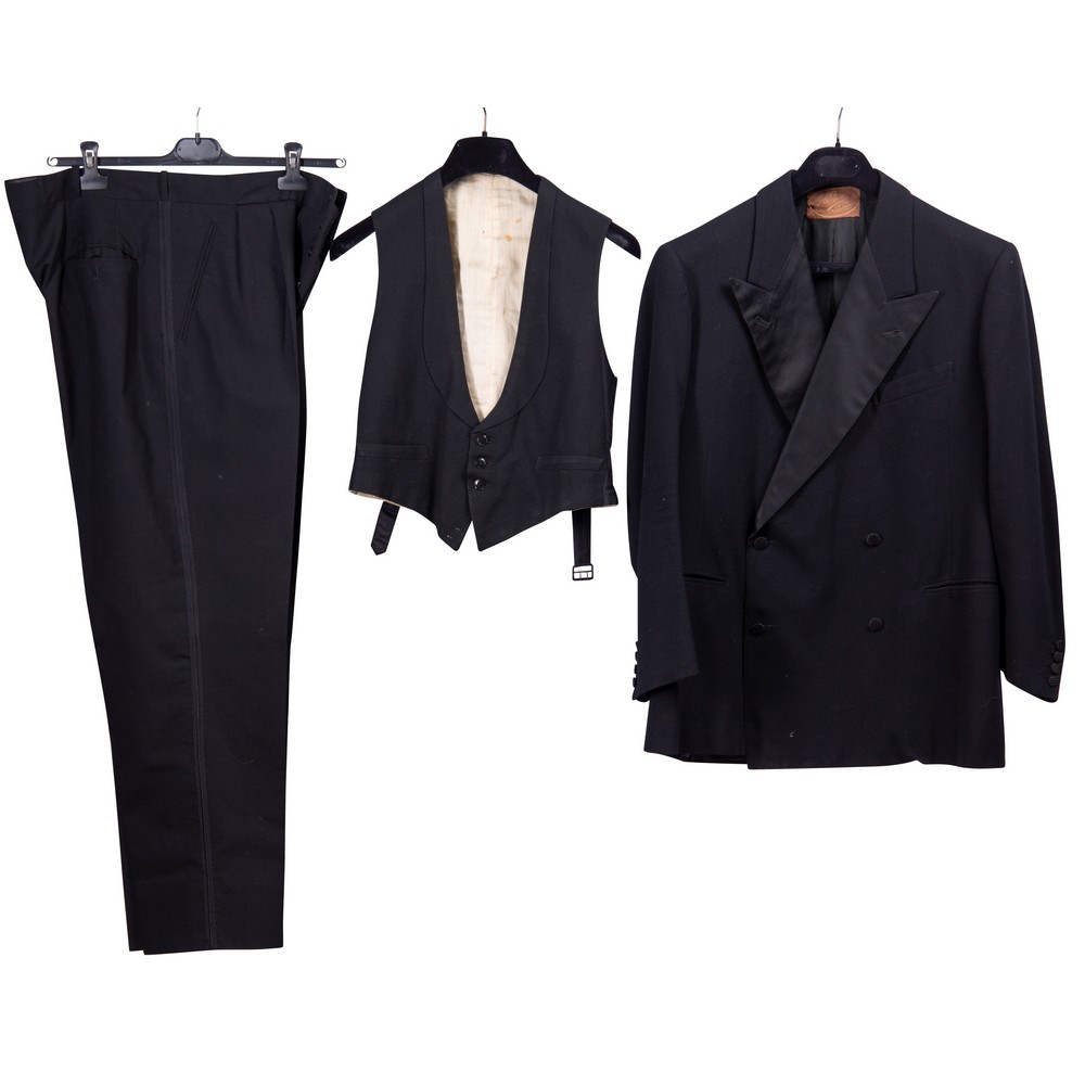 Quattro smoking giacca e pantalone in panno di lana nero, uno con gilet. Uno con etichetta La Parola, Palermo e uno con etichetta A Bevilacqua, Palermo.