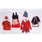 Abito per bambina: gonnellina in cotone color rosso, corpetto in cotone color nero ornato di punto a catenella in seta color rosso e piccolo grembiule nella parte frontale in rigatino di seta ricamato con rose e guarnito con applicazioni di trine e pizzo. Epoca 1870.