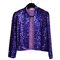 Corpetto in seta operata a reticolo interamente rivestito da paillettes in colla di pesce color violetto. Epoca 1950,