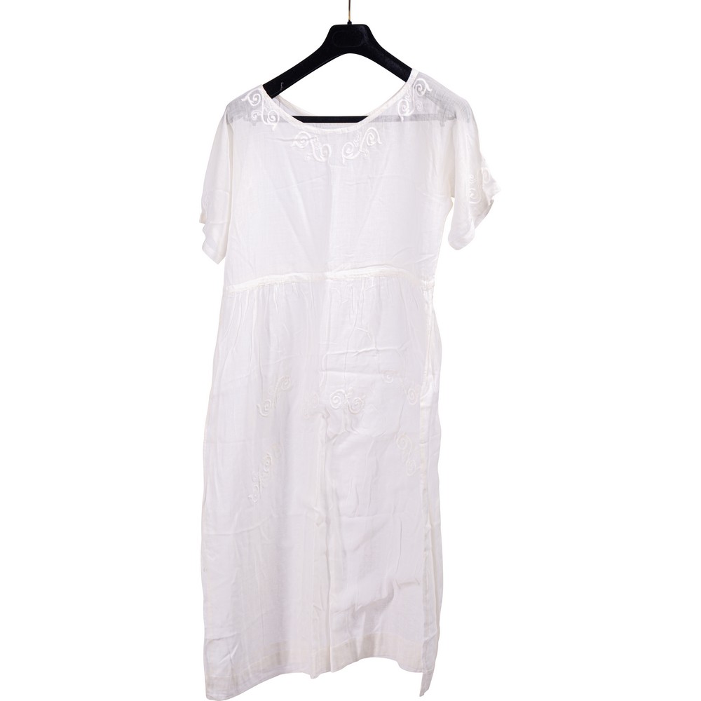Abito femminile estivo in organza decorata da ricami in filo di seta a motivi floreali. Epoca 1900.