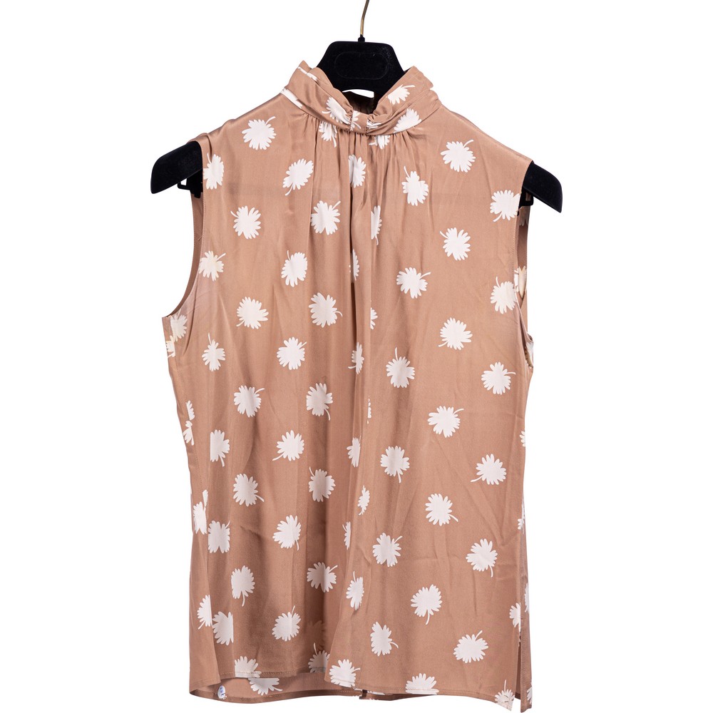 Camicia in seta color nocciola con garofani bianchi. Etichetta: Valentino. Epoca 1970.