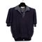 Maglia in cotone color bleu con inserti di seta operata color bleu a plumetis color argento.