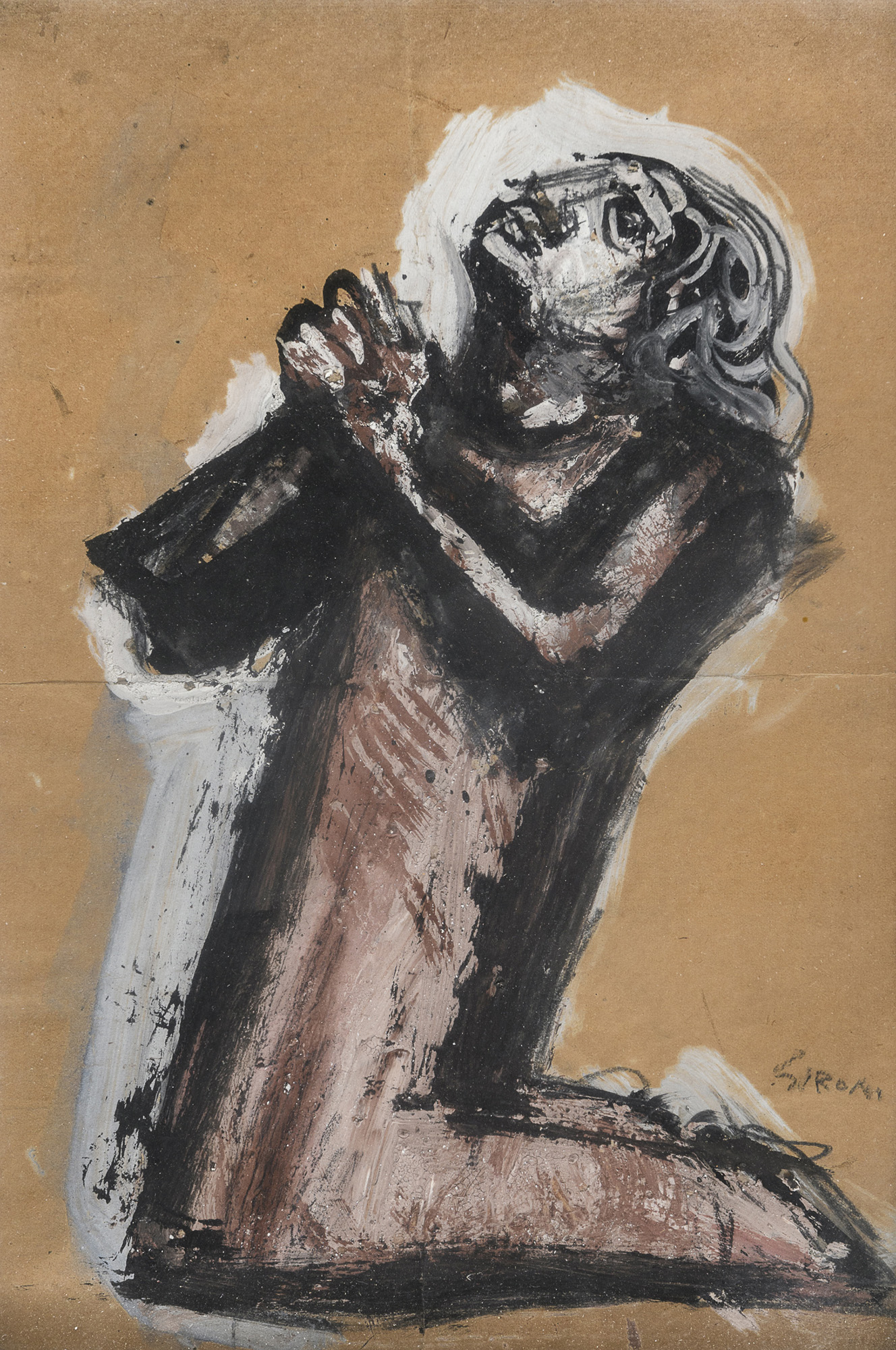 TEMPERA E MATITA L'ORANTE DI MARIO SIRONI