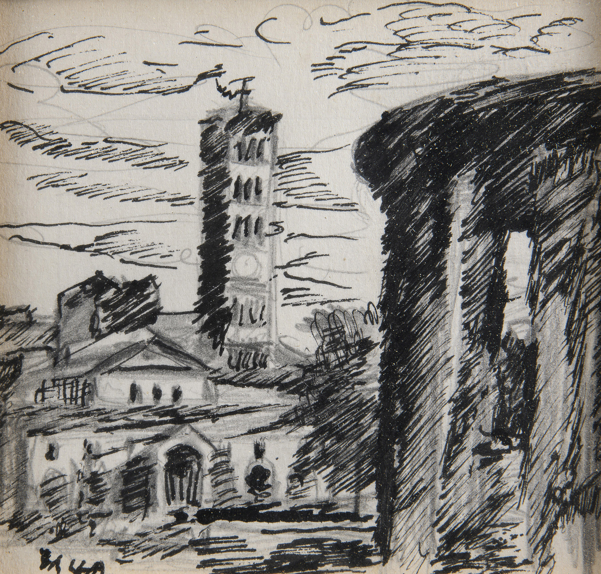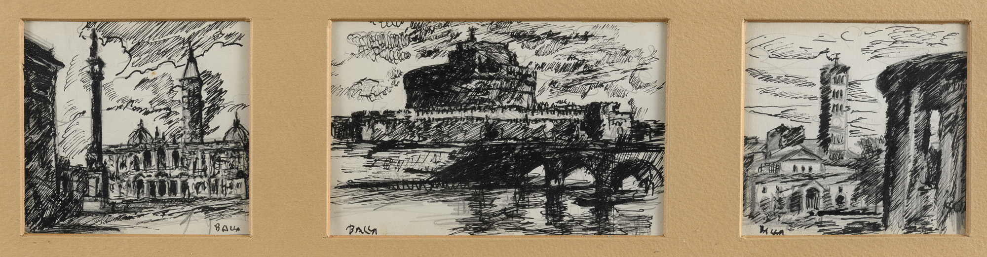Tre disegni a inchiostro e matita, cm. 10,5 x 11, cm. 11 x 16,5 e cm. 10,5 x 11