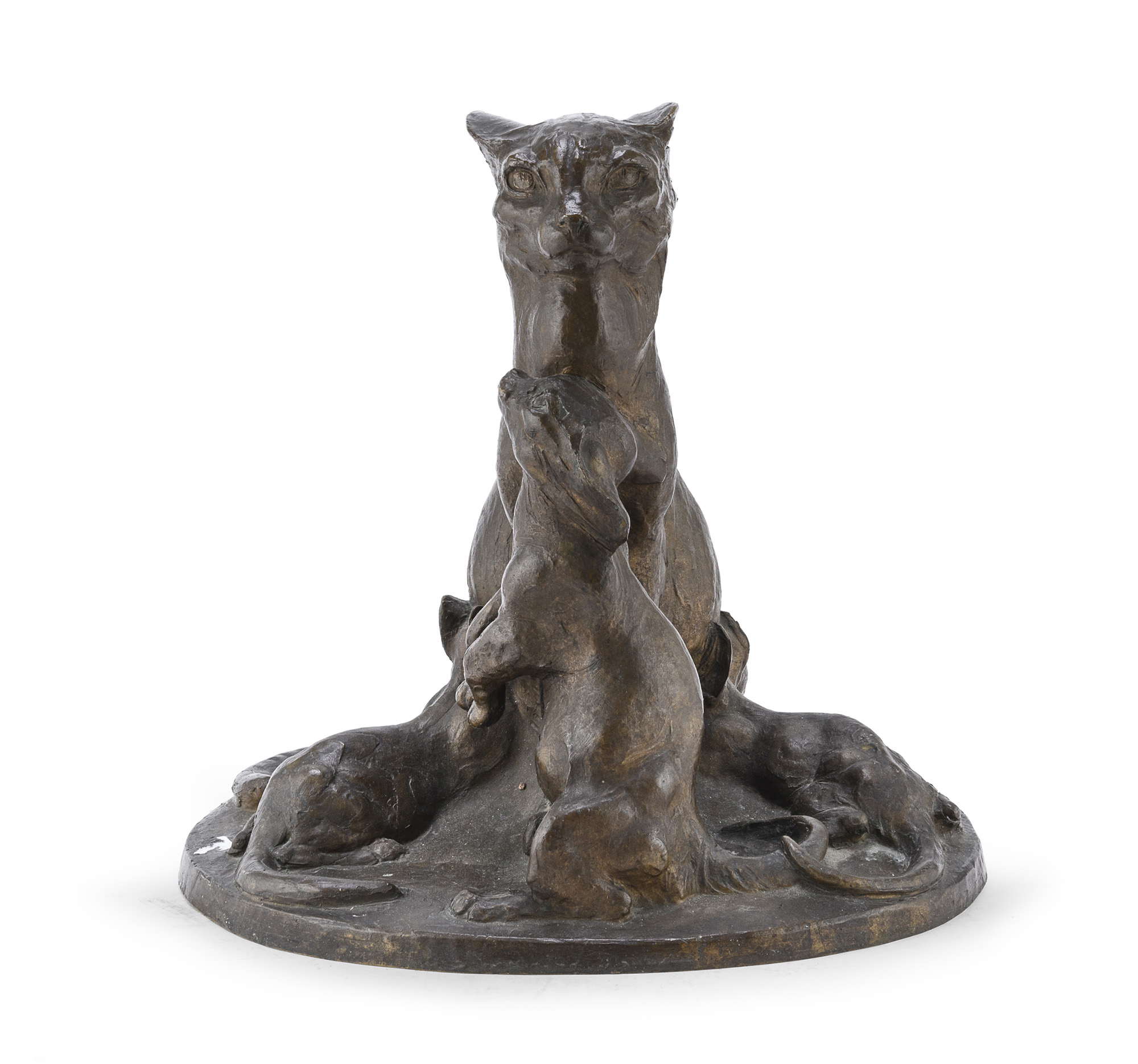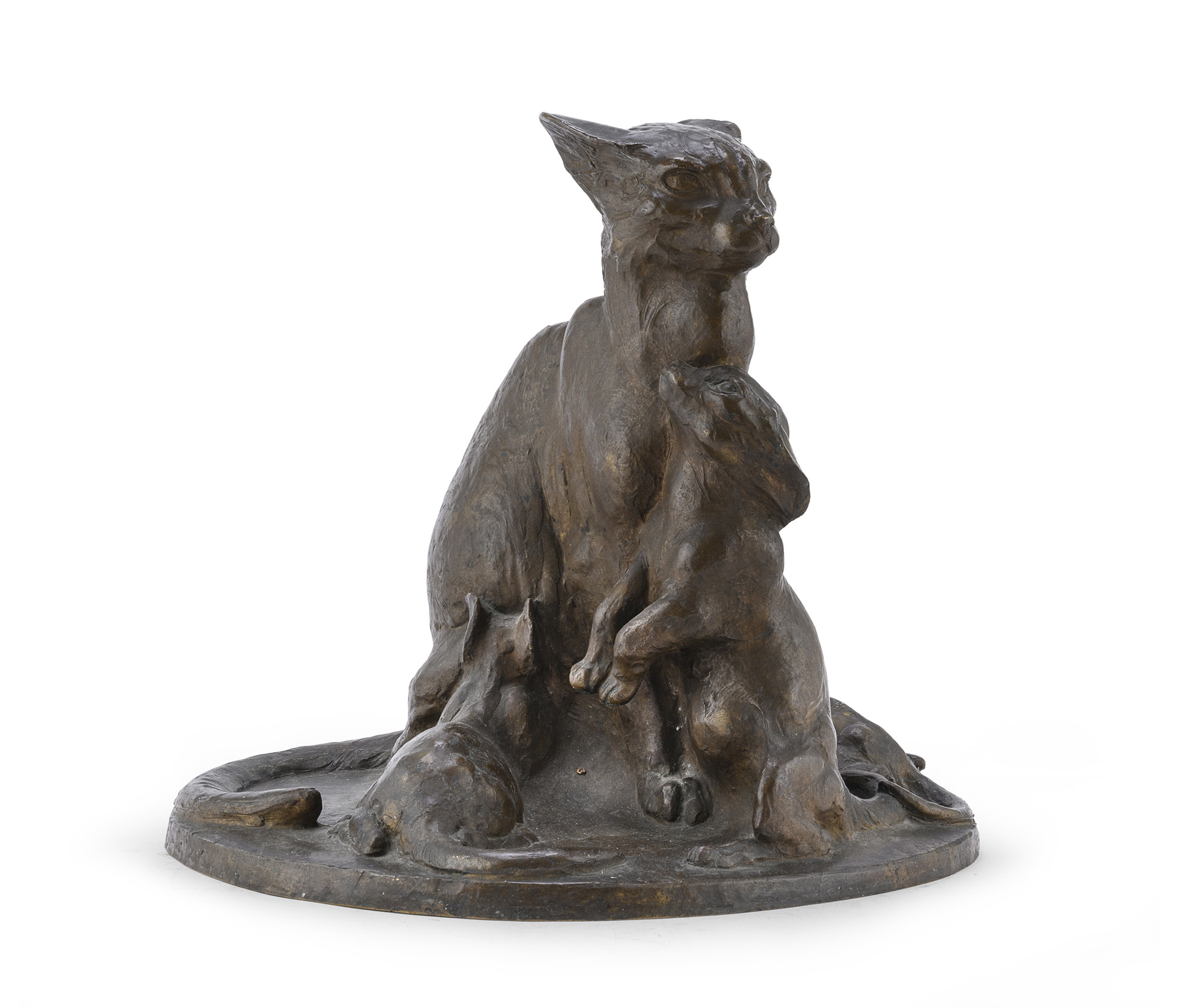 SCULTURA GATTA E MICI DI RENATO BROZZI