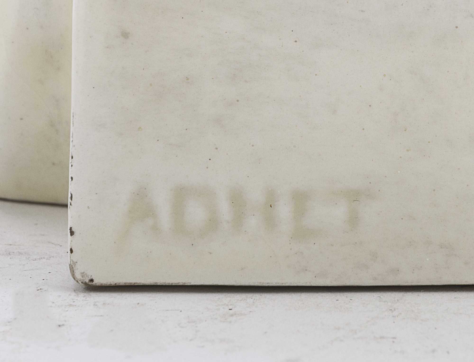 in terracotta policroma smaltata e invetriata a colaggio, cm. 21,5 x 9 x 18 e cm. 14 x 9 x 23