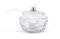 decorata da rudentature orizzontali e verticali al corpo. Presa del coperchio in metallo argentato. Completa di mestolo.