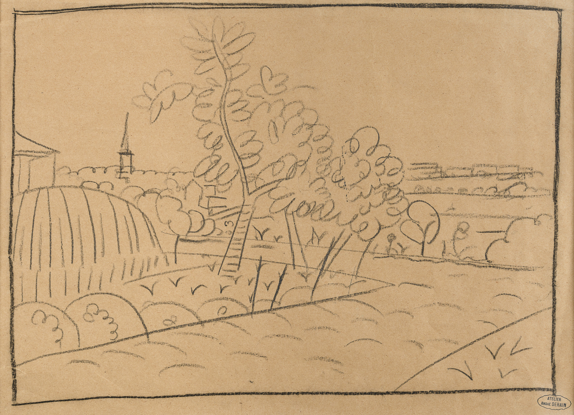 DISEGNO A MATITA CAMPANILE E GIARDINO DI ANDRÉ DERAIN