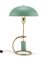 con struttura in ottone, riflettore e piede in alluminio laccato a fondo turchese.
