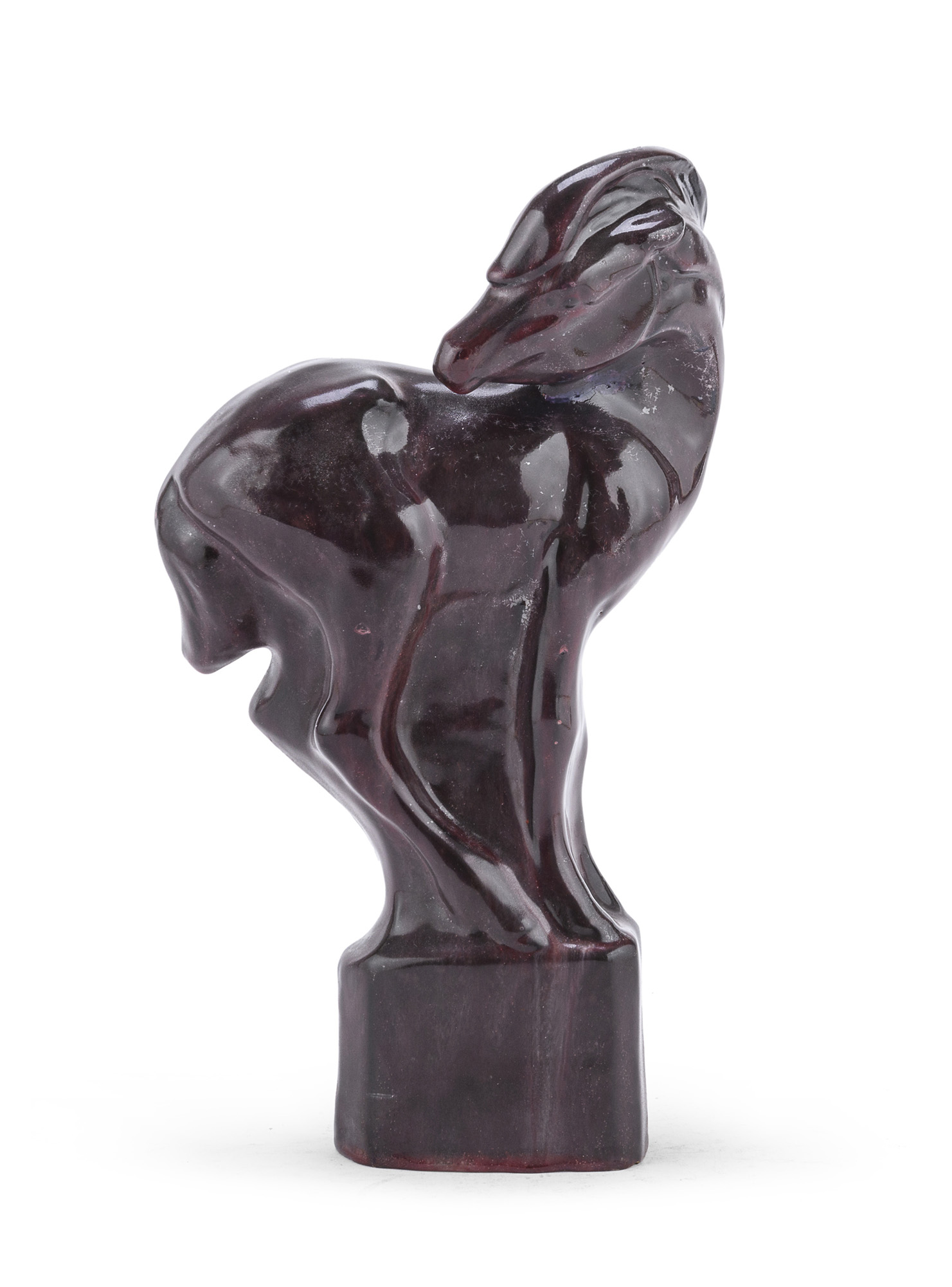 a smalti policromi invetriati, raffigurante un cavallo. Piede a cilindro.
