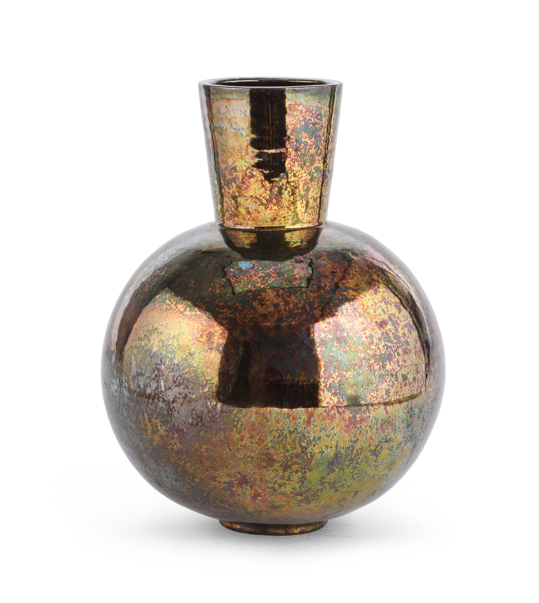 in ceramica policroma smaltata a lustro, con corpo sferico.