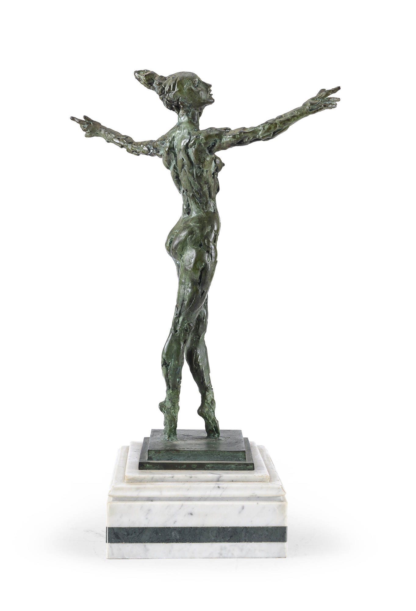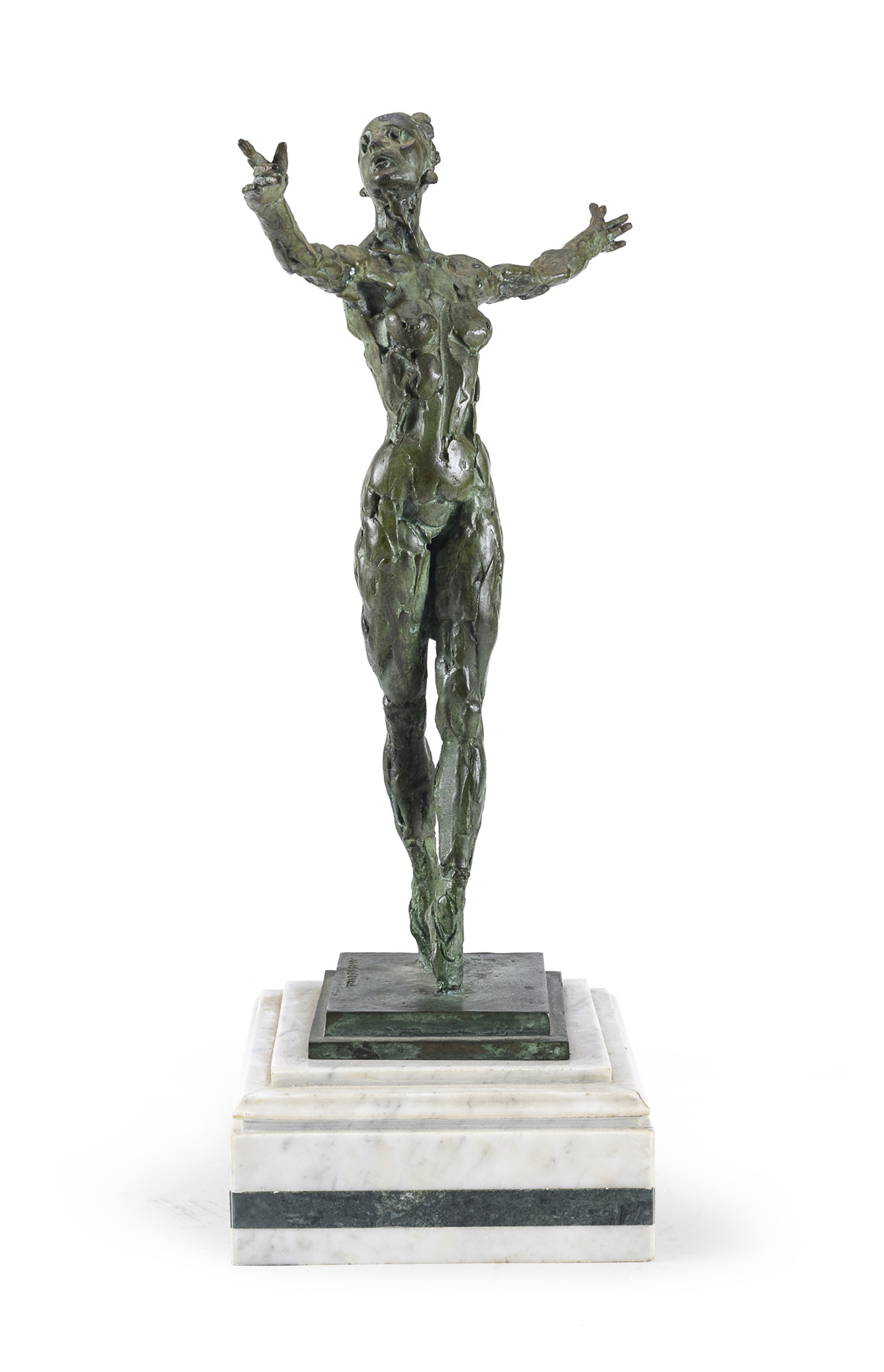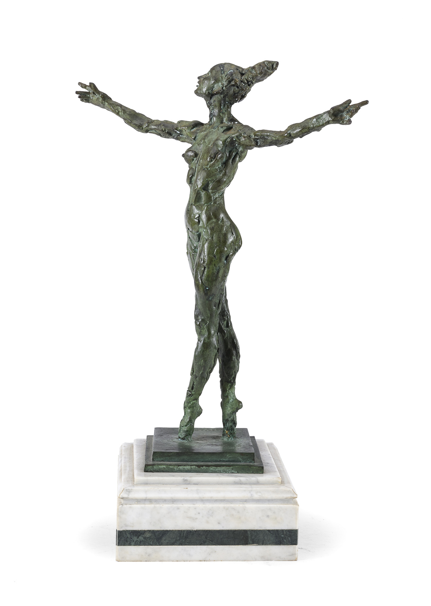 Scultura in bronzo a patina verde, ex. 32/230.