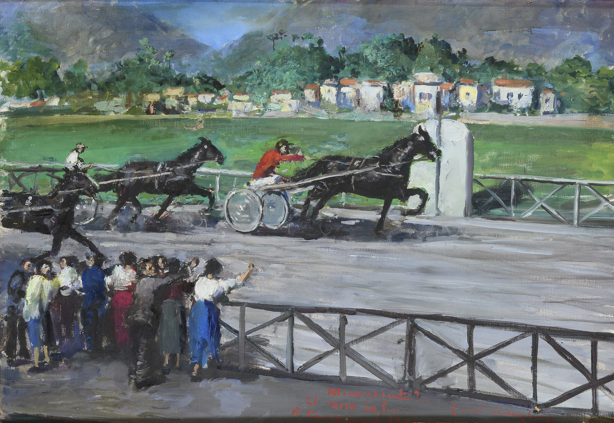 DIPINTO CORSA AL TROTTO DI ROBERTO CARIGNANI