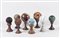 SERIE DI SETTE SFERE SOPRAMMOBILE in marmo ed altri materiali su basi tornite