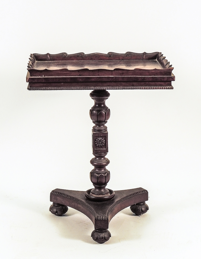 TAVOLINO IN MOGANO metà del XIX secolo piano a vassoio intagliato con piccole...