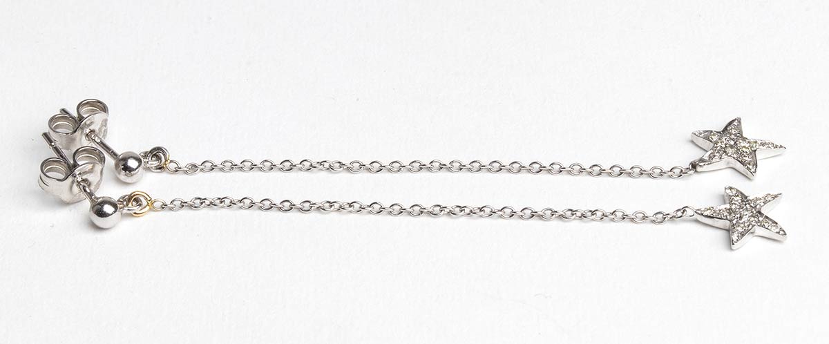 oro bianco 18k, incastonati con pavé di diamanti taglio brillante 0,15 ct circa G-H, VVS-VS. Punzonato "750".
