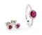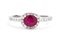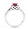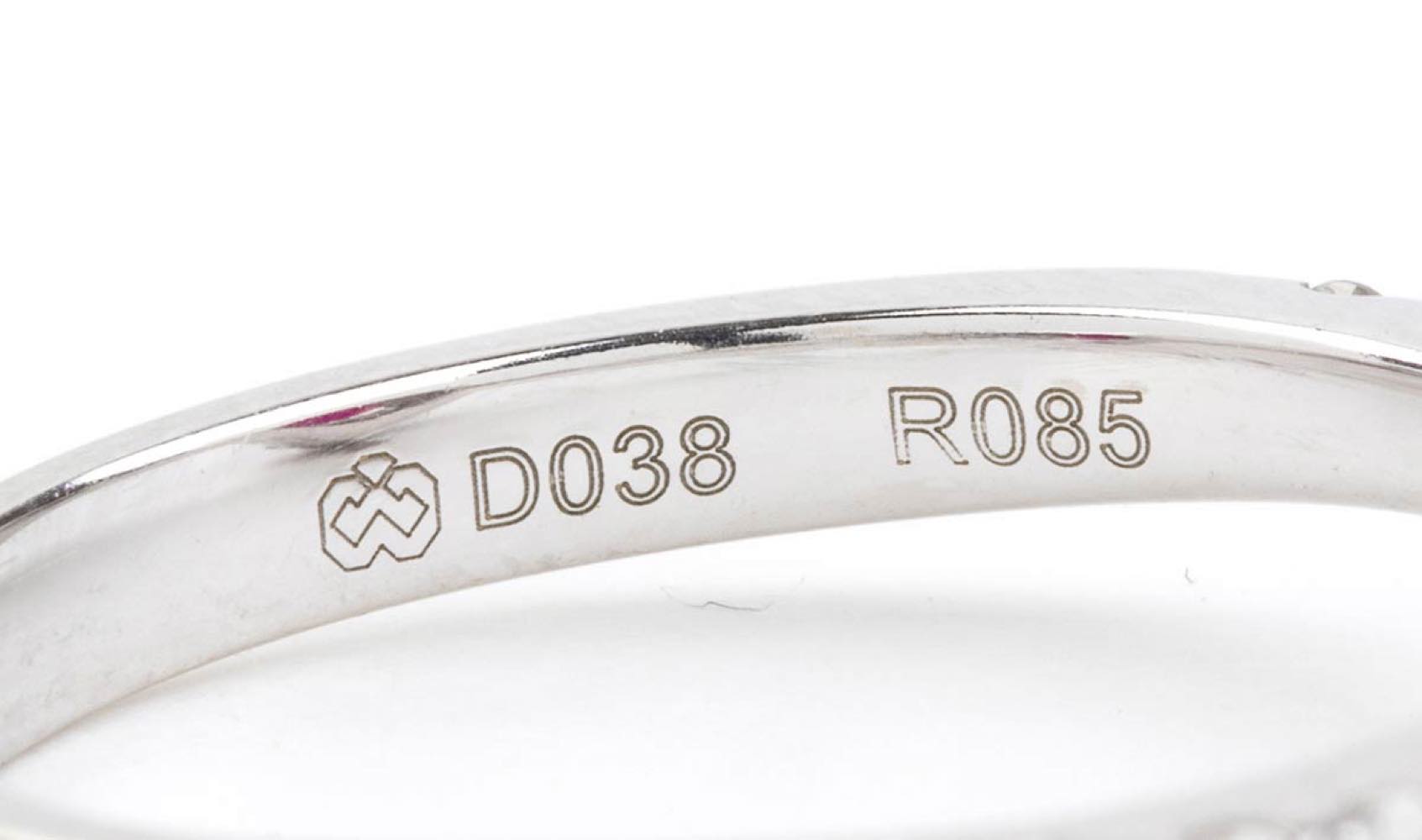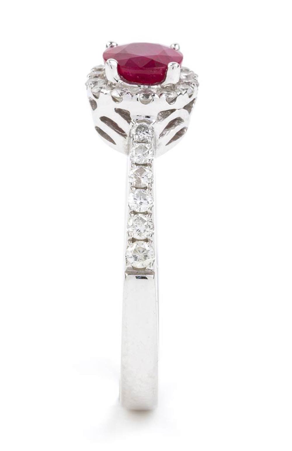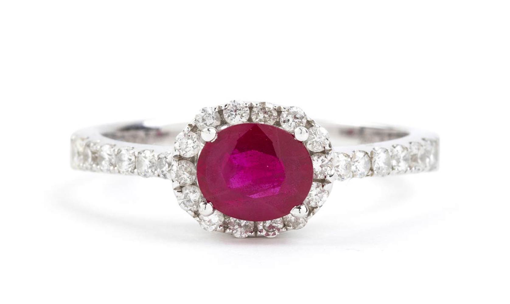 Anello incastonato con rubino circa 0,85 ct, contornato da diamanti taglio brillante, circa 0,38 ct, G-H, SI.