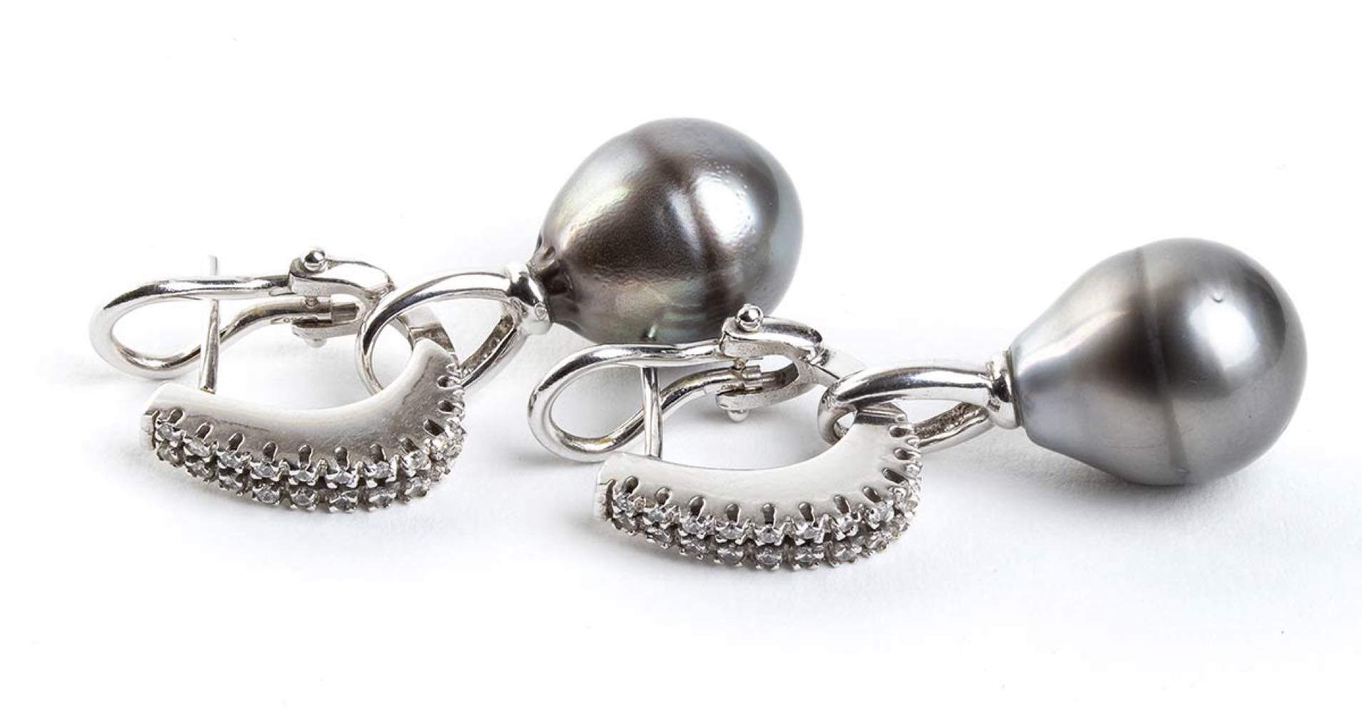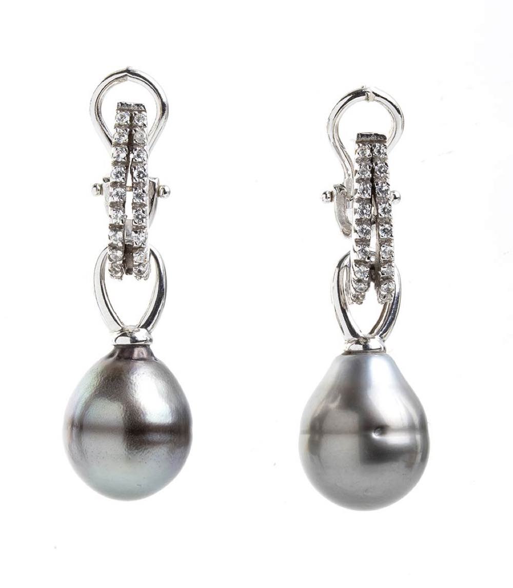 Orecchini pendenti in oro con perle Tahiti e diamanti