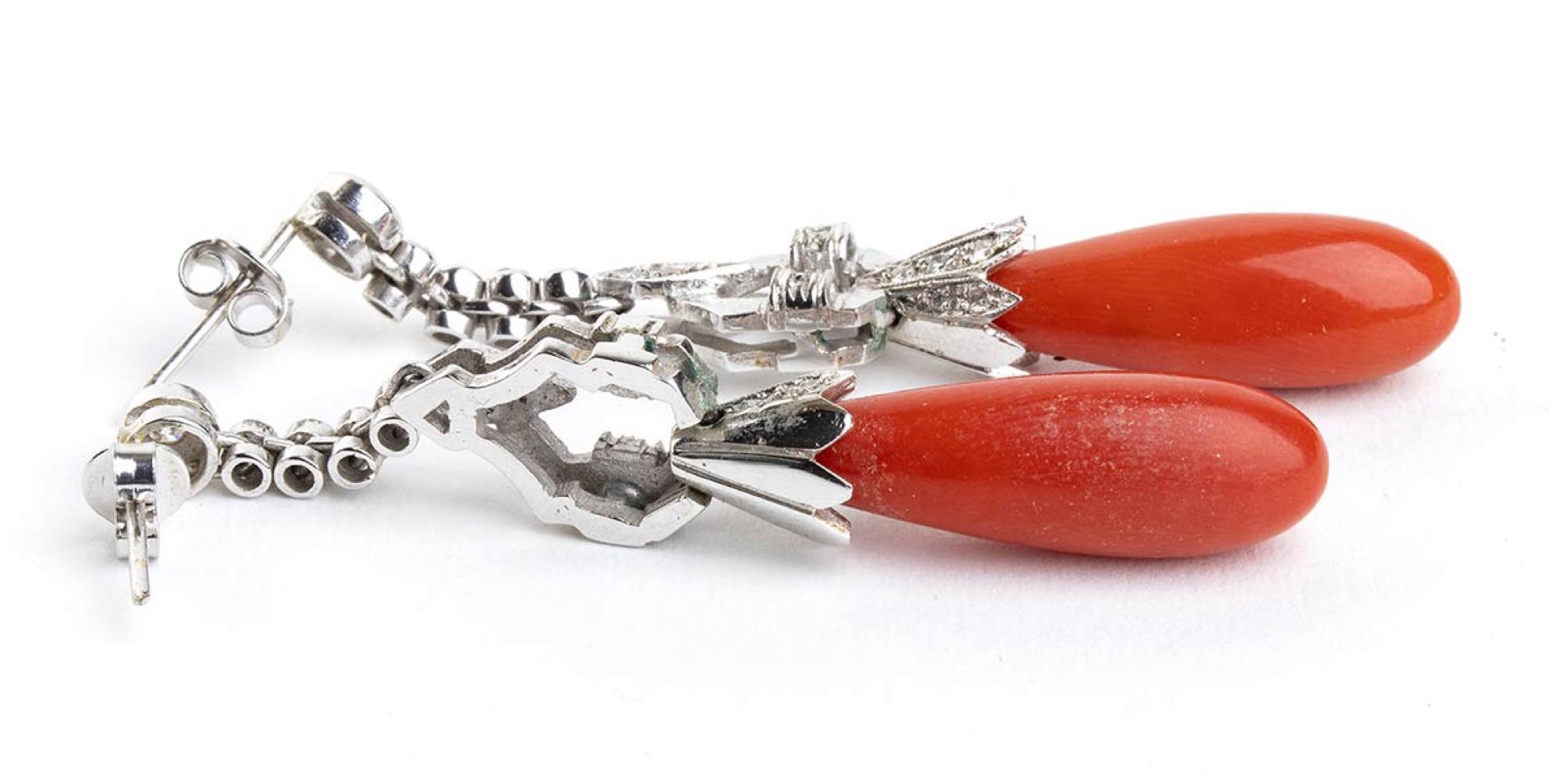 Paio di orecchini con diamanti e corallo Mediterraneo