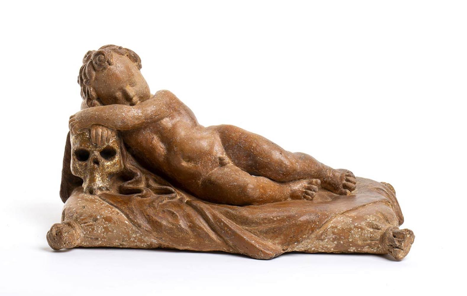 terracotta, con traccie di doratura sul teschio.