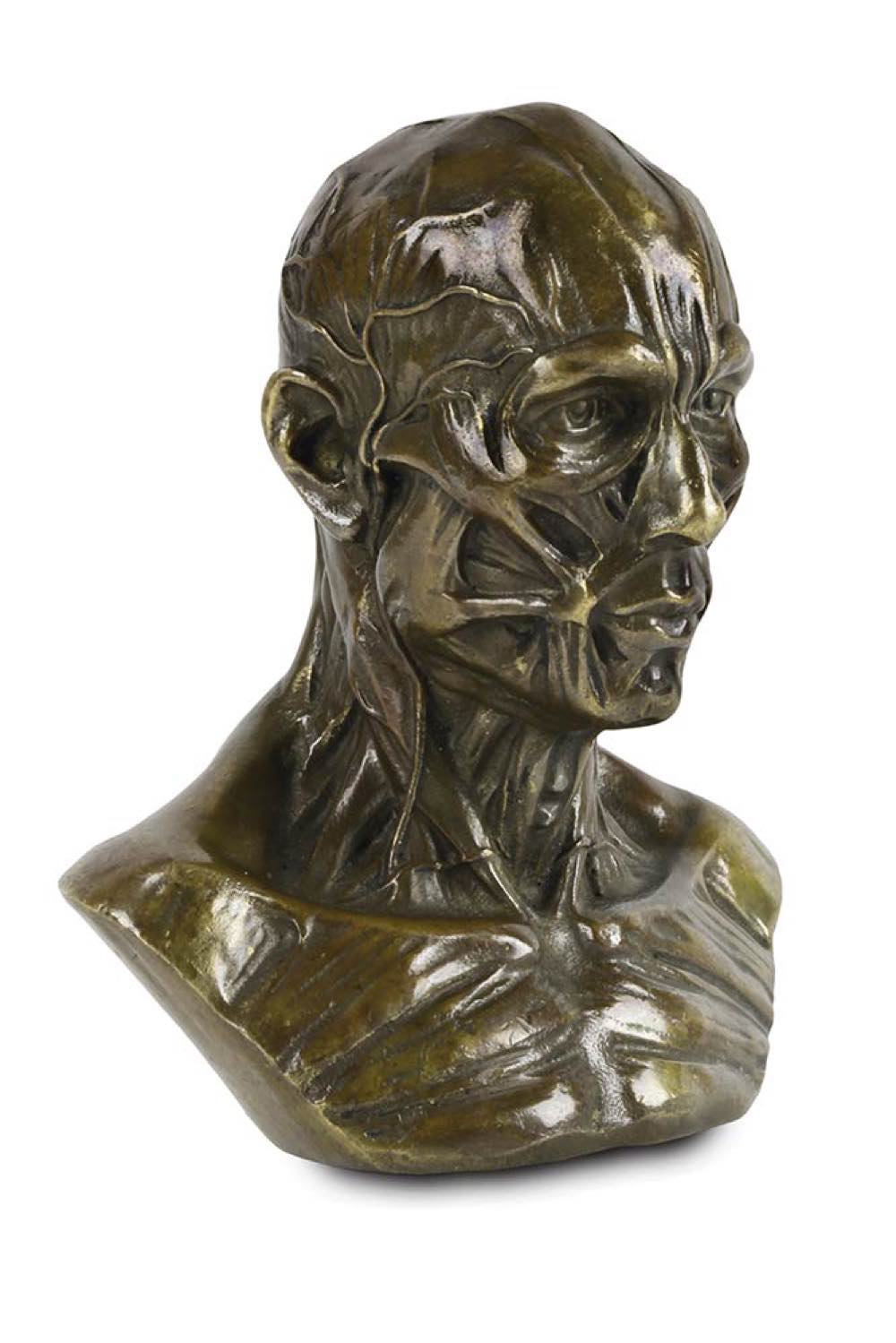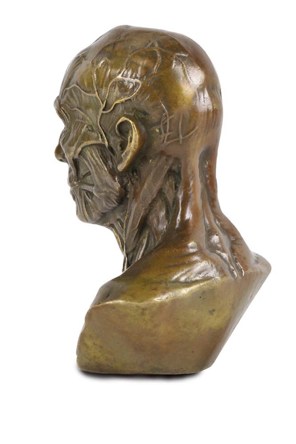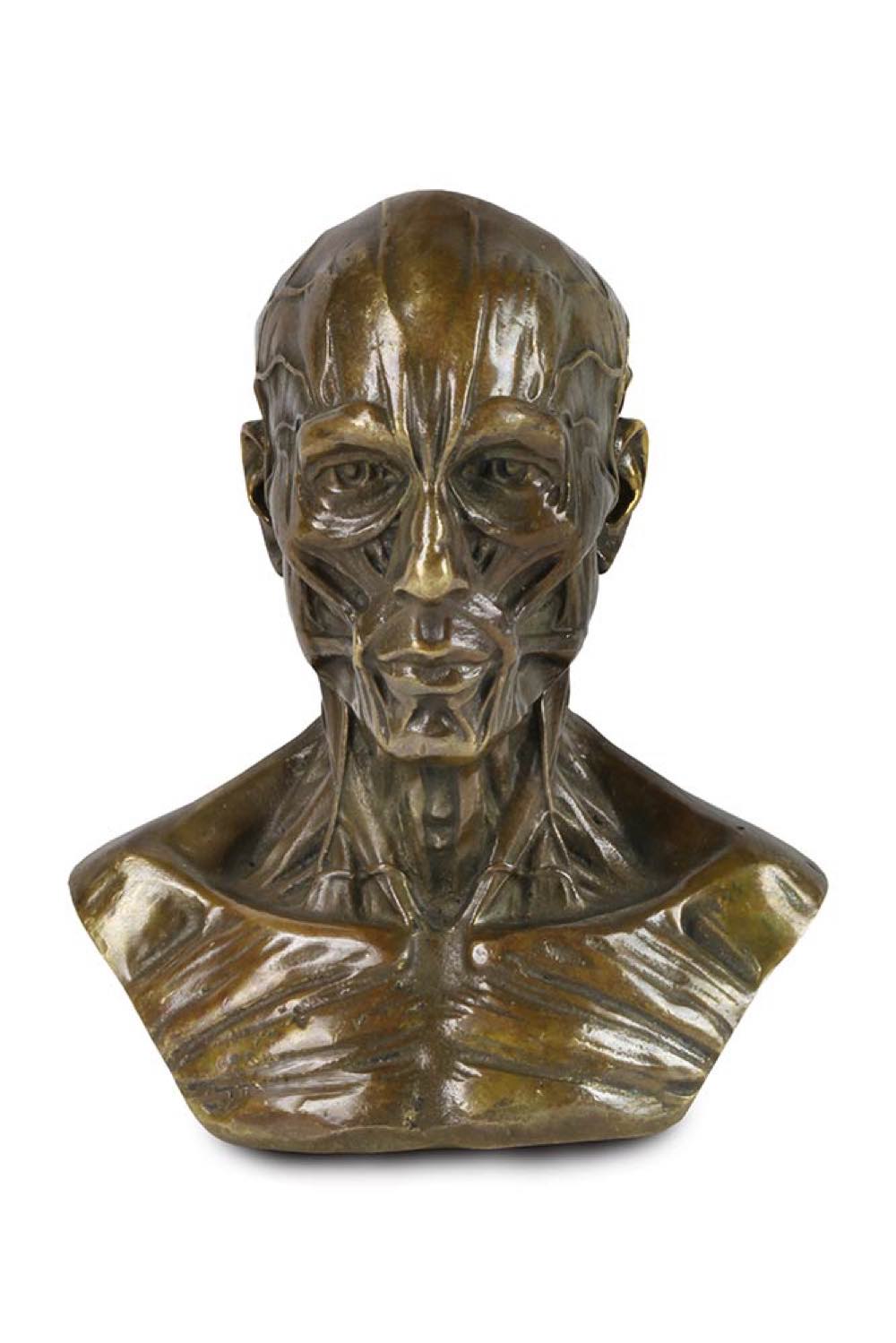 rara scultura anatomica di un busto maschile scorticato in bronzo patinato. Le sculture anatomiche sono solitamente eseguite in gesso a scopo didattico.