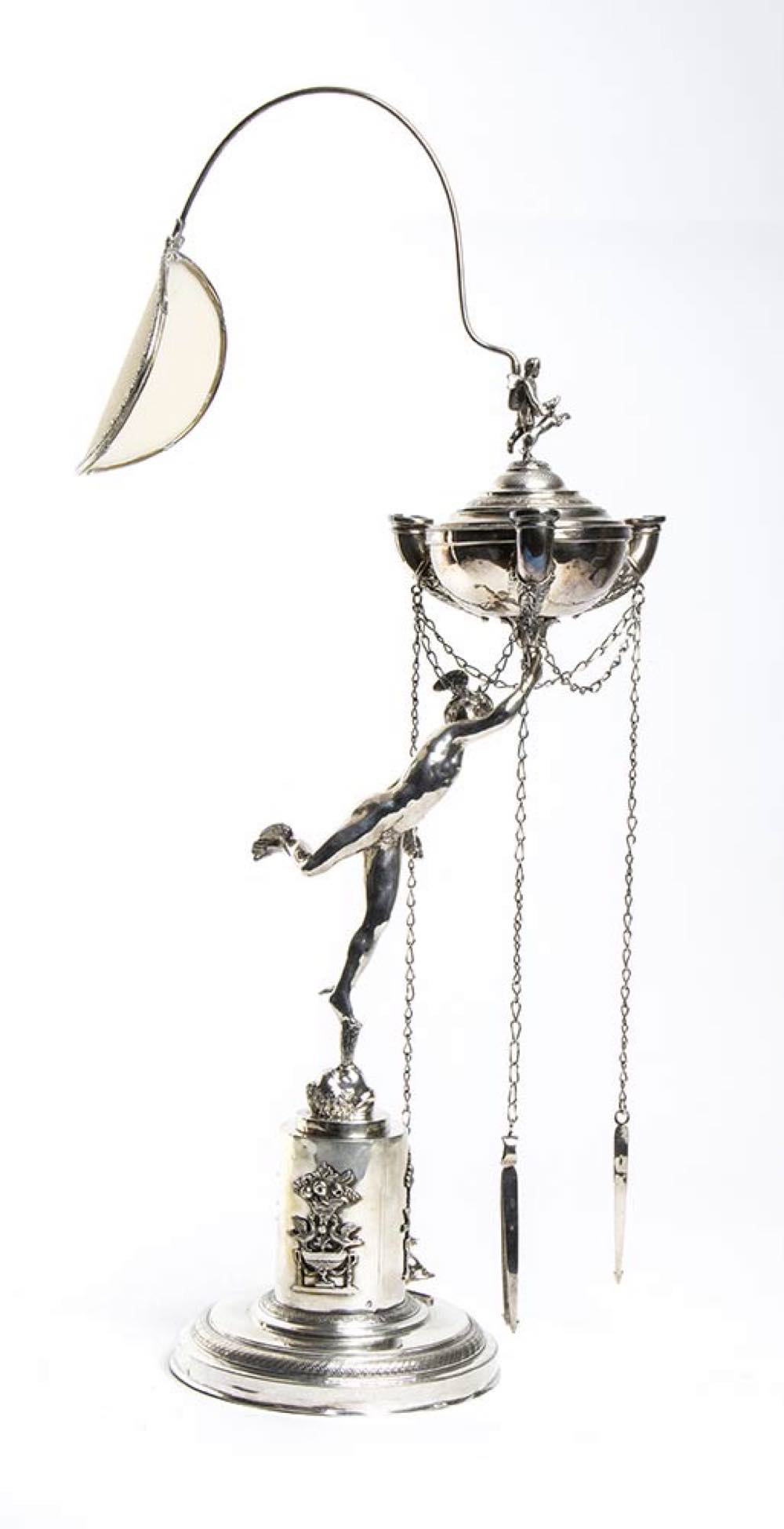 Lucerna Stato Pontificio in argento, raffigurante mercurio - Roma, XIX secolo dopo il 1815