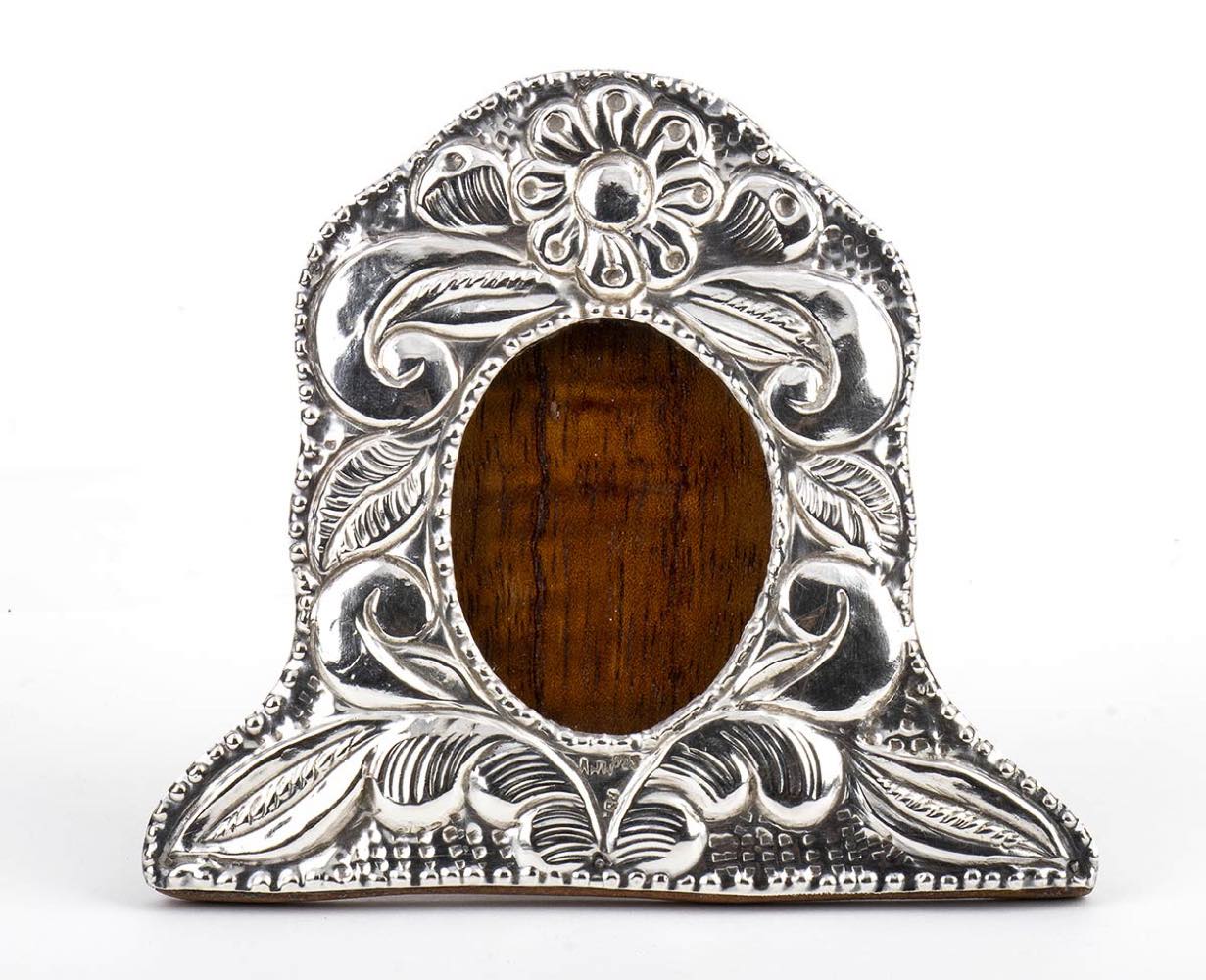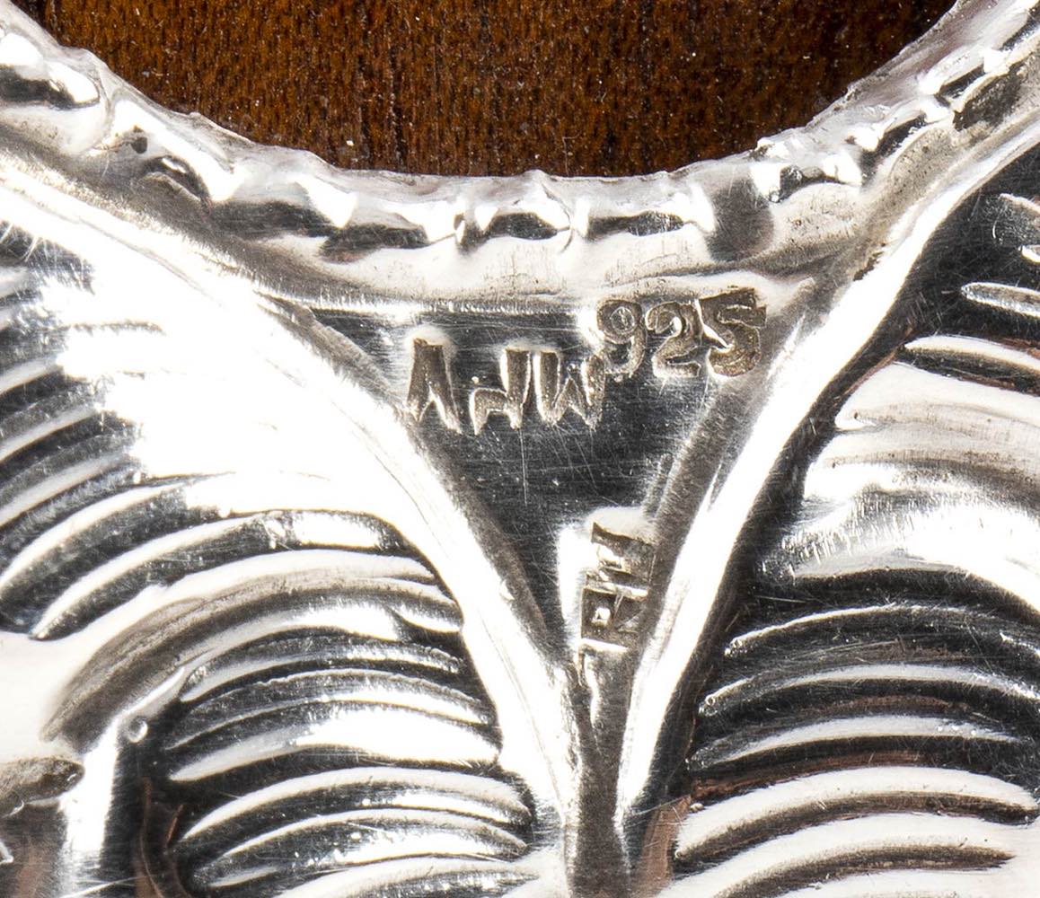 sbalzata e cesellata con decori floreali. Argento 925/1000 su supporto ligneo, punzonata "RM - MPV - 925"