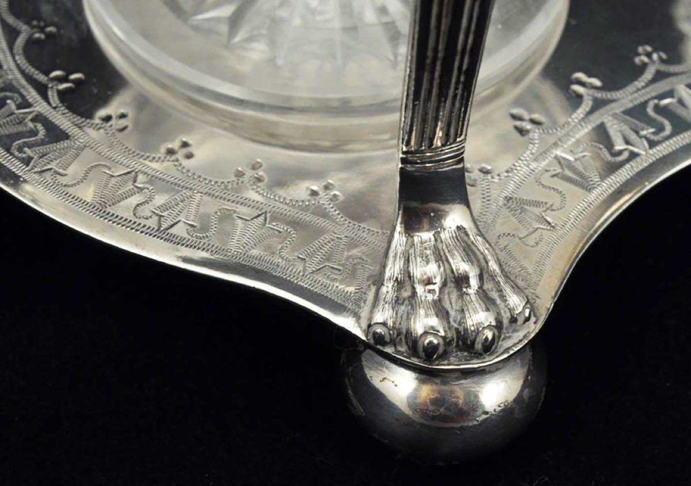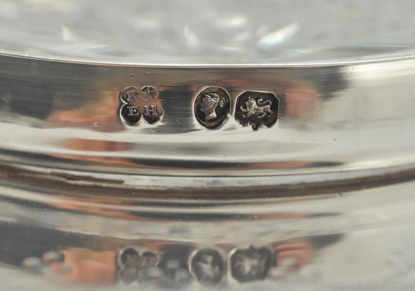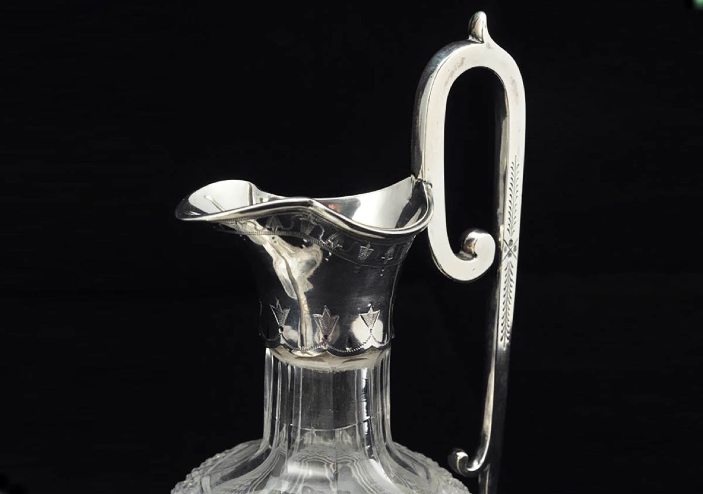 Fragoliera inglese vittoriana in argento e cristallo molato - Londra 1870, maestri argentieri Martin, Hall & Co.