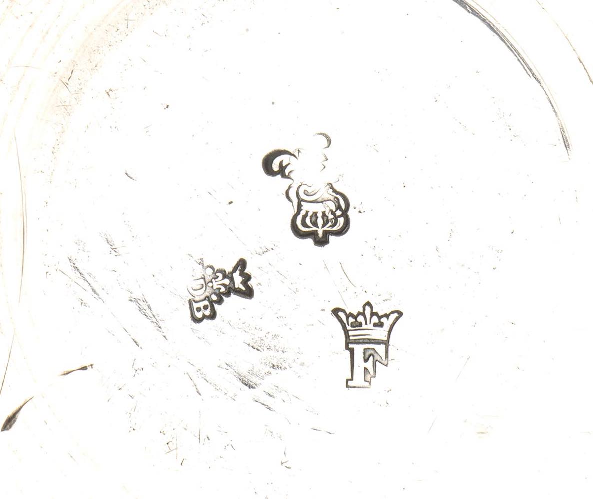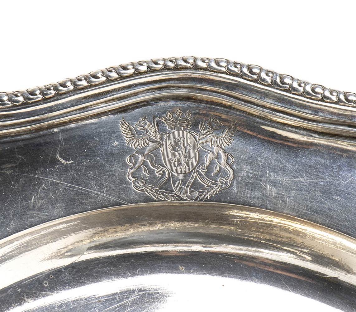 di forma rotonda sagomata con decorazione perimetrale ad ovuli e nastri. Punzonati con marchi in uso a Parigi nella metà del XVIII secol, argentiere "JDB" non identificato.