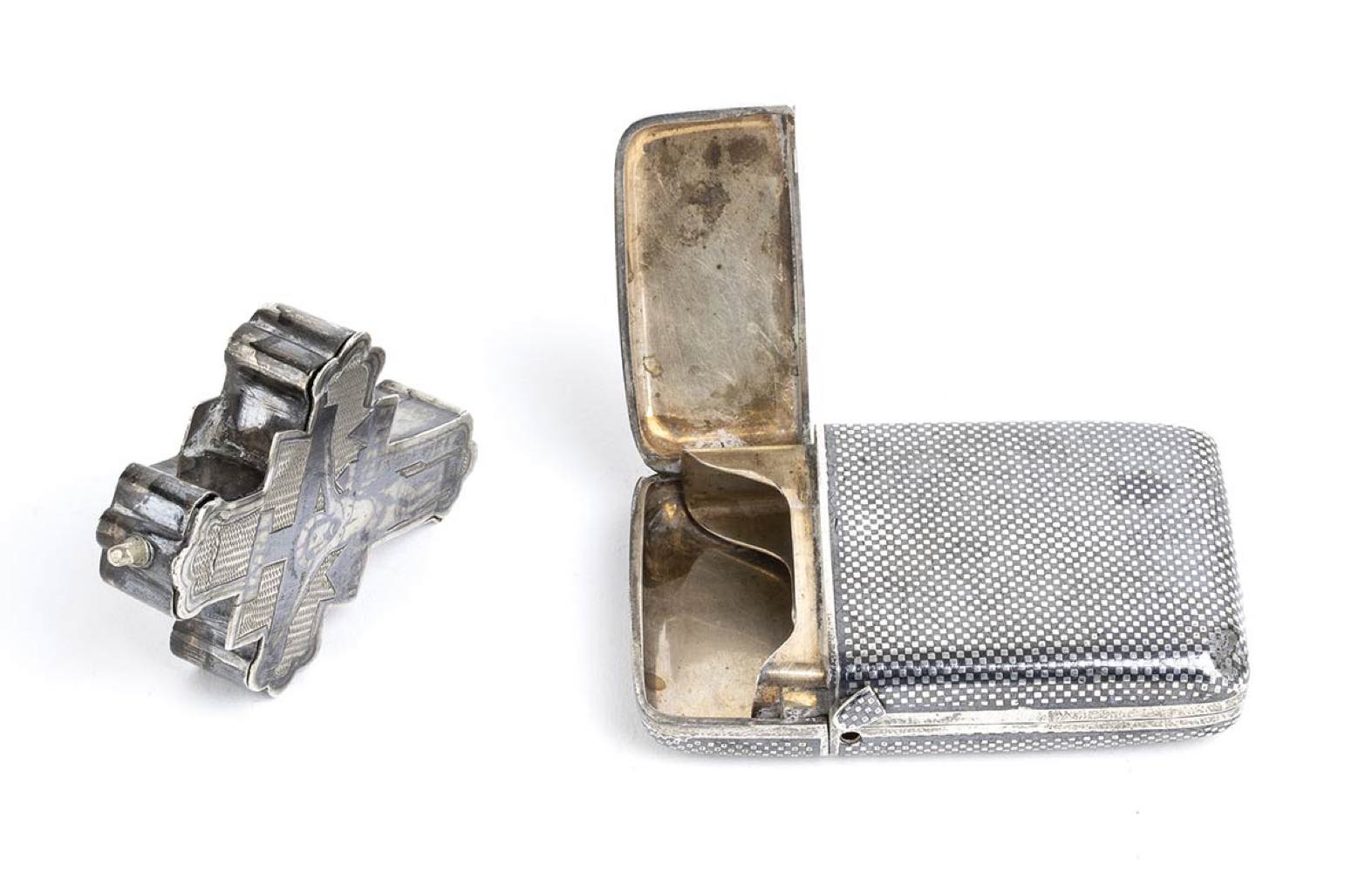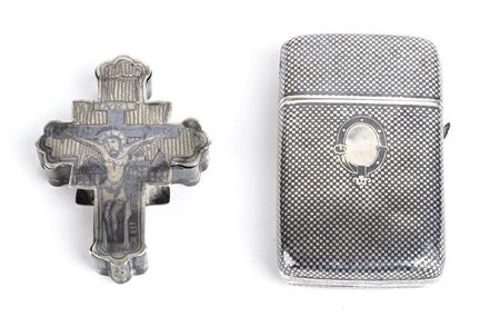 Lotto composto da un portasigarette e da una croce pettorale in argento niellato - XIX secolo