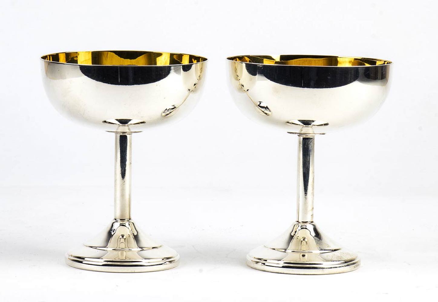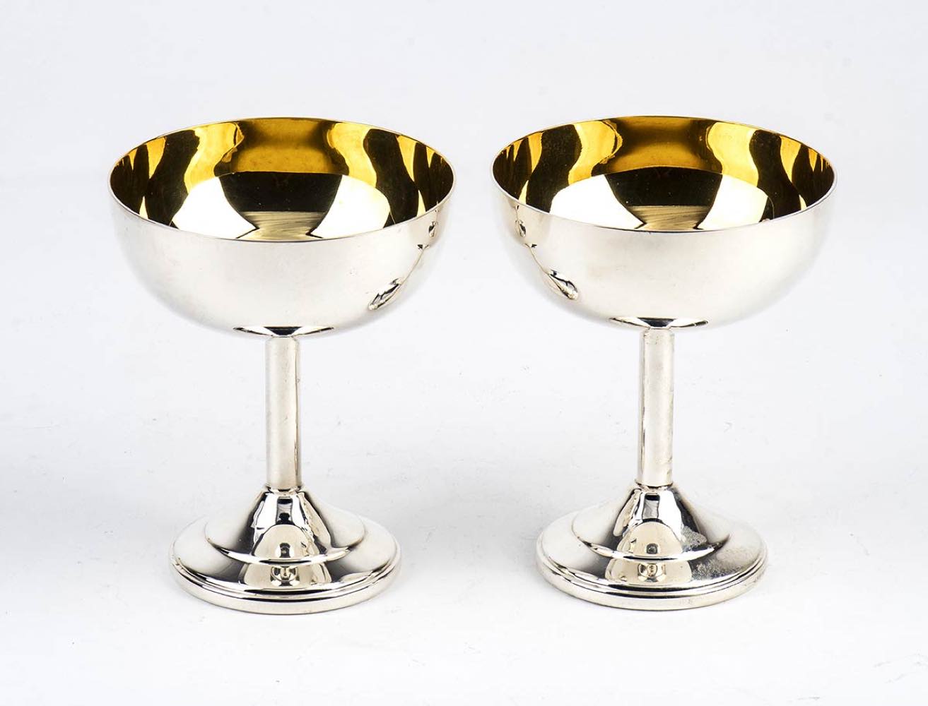 c) due coppe in argento 800/1000 punzonate "800" e "* 29 PD", altezza 11,8, diametro 9,5 cm, peso 338 gr;
