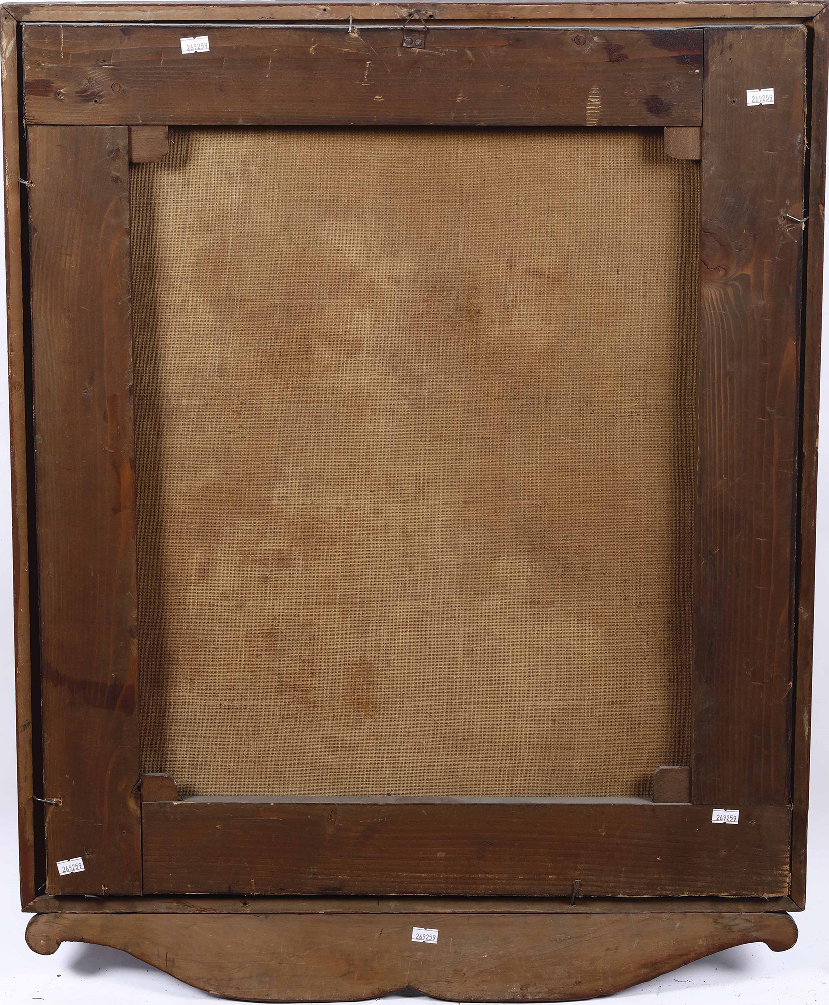 entro cornice con iscrizione, olio su tela, Largh. 58 - Alt. 68 Cm
