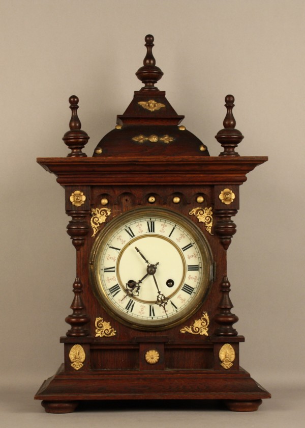 Orologio da tavolo in legno con quadrante in smalto. Fine XIX secolo....