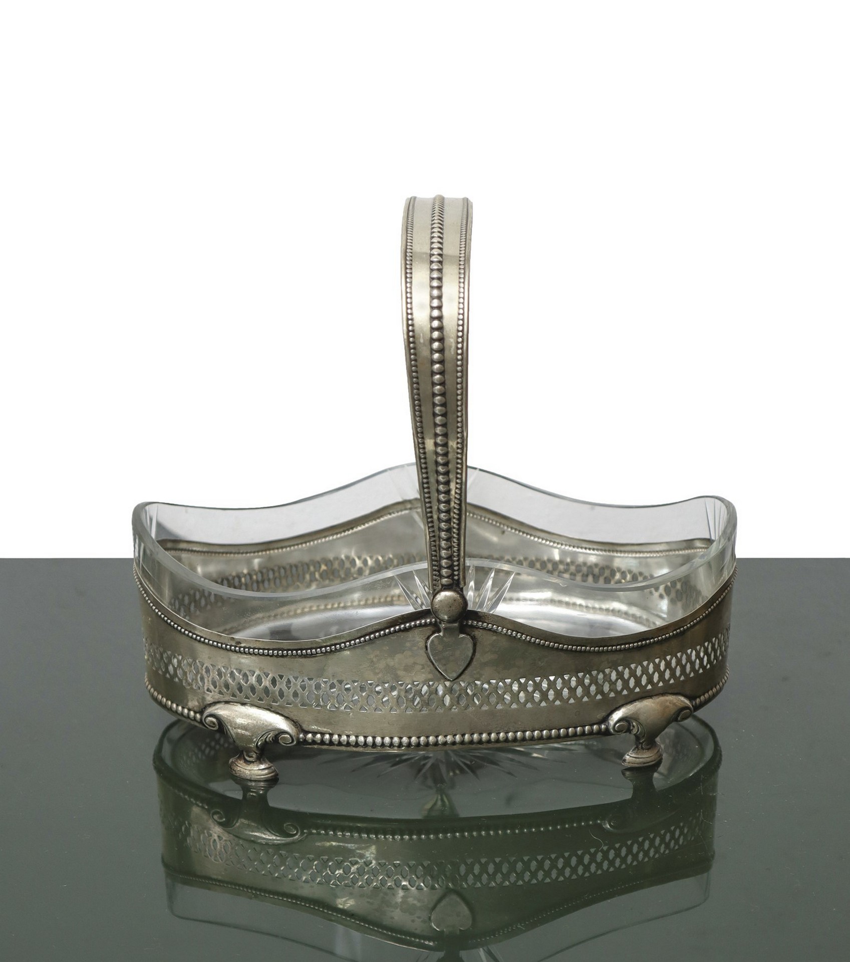 Porta dolci in argento, Decò, 1930s cm 20 x cm 25 x cm 15 Con base in vetro bulinato Con base in vetro bulinato