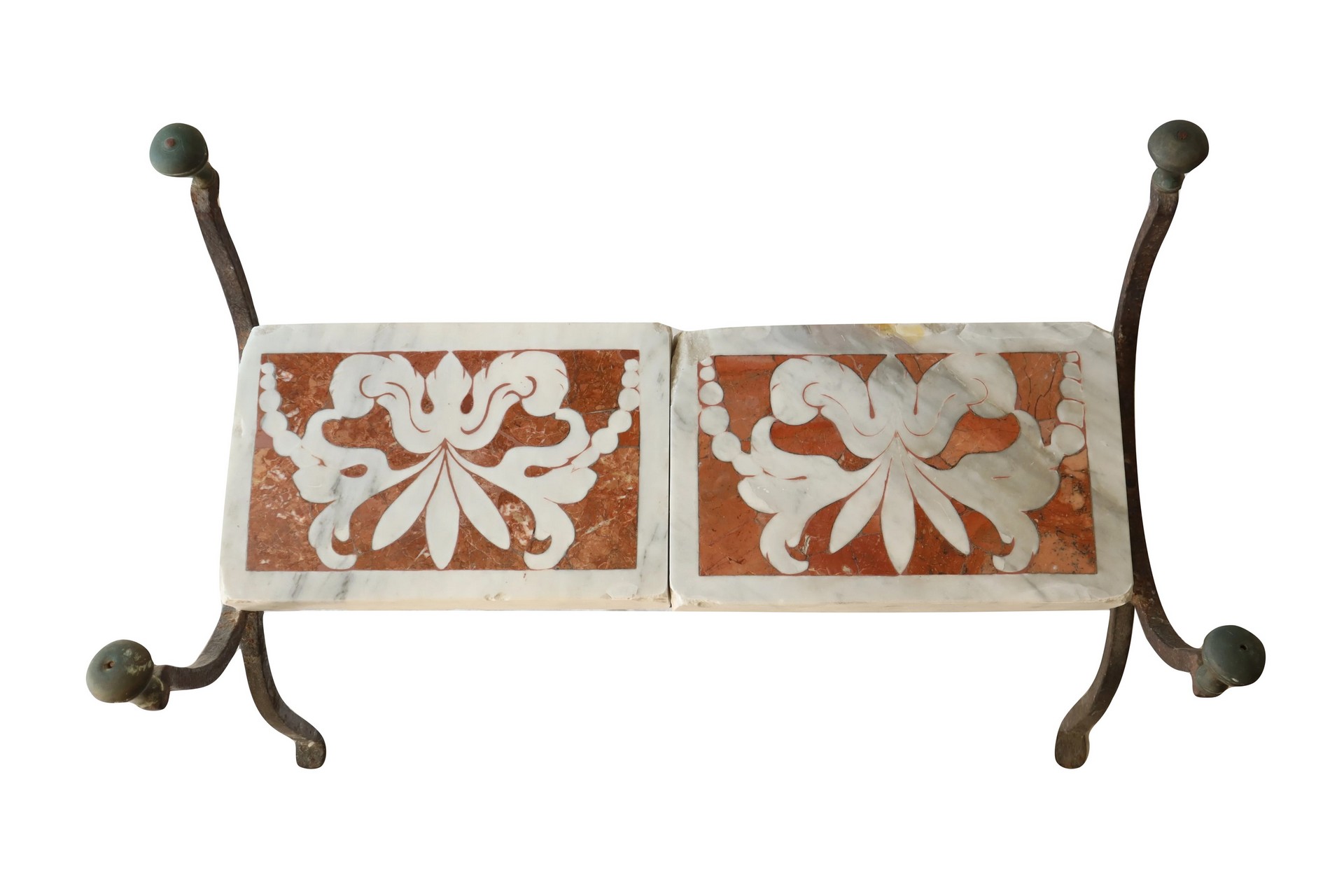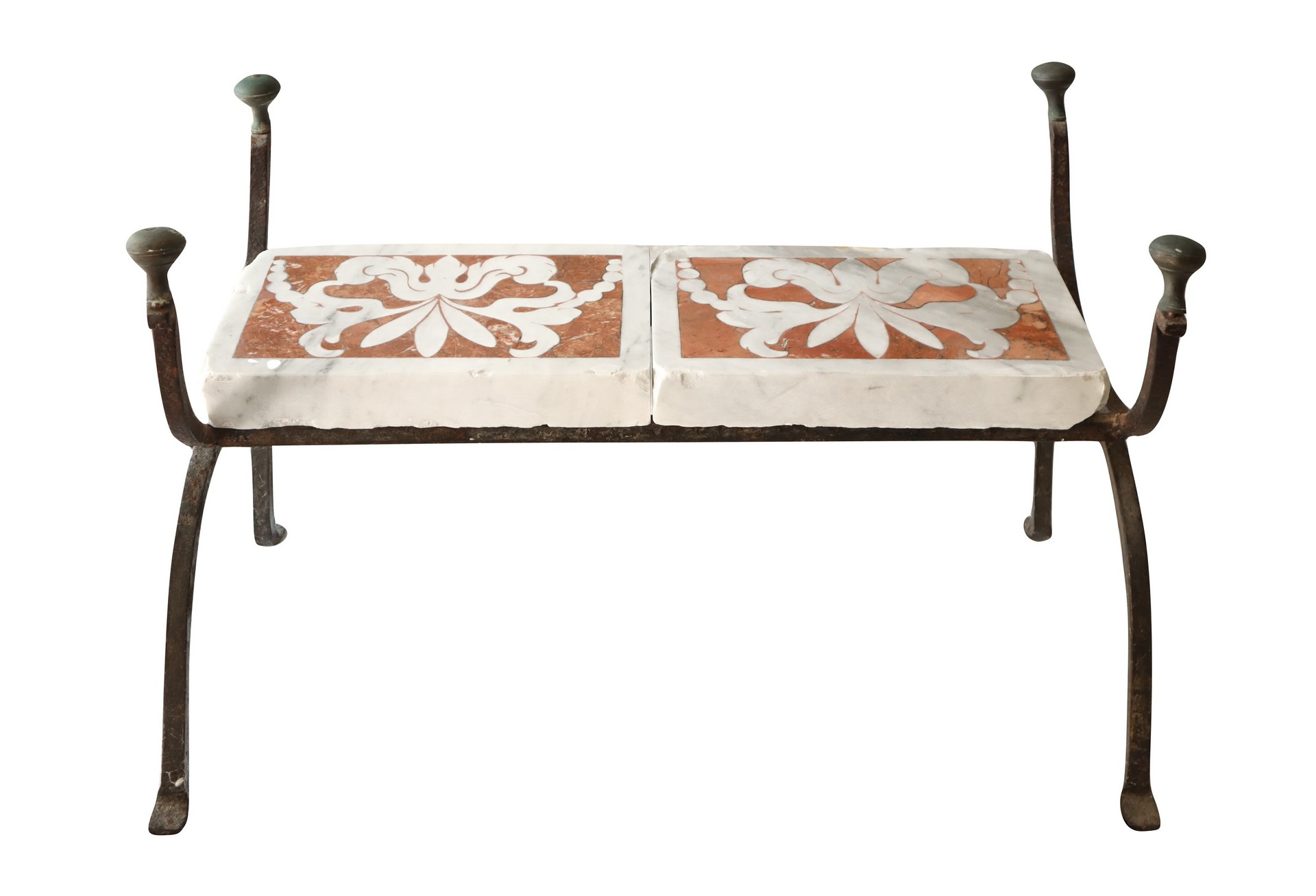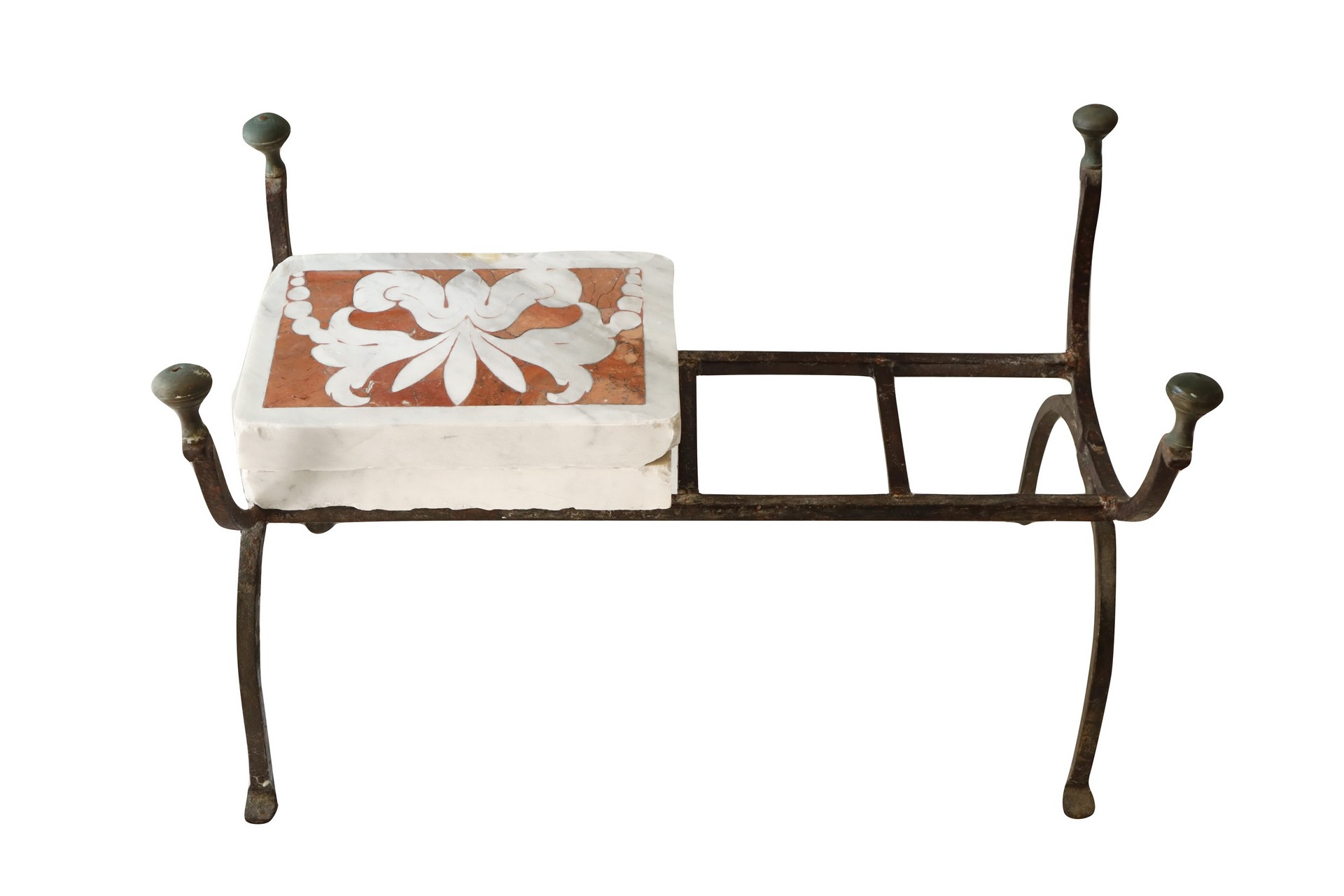 Panca in ferro con marmo intarsiato al piano, 17th century