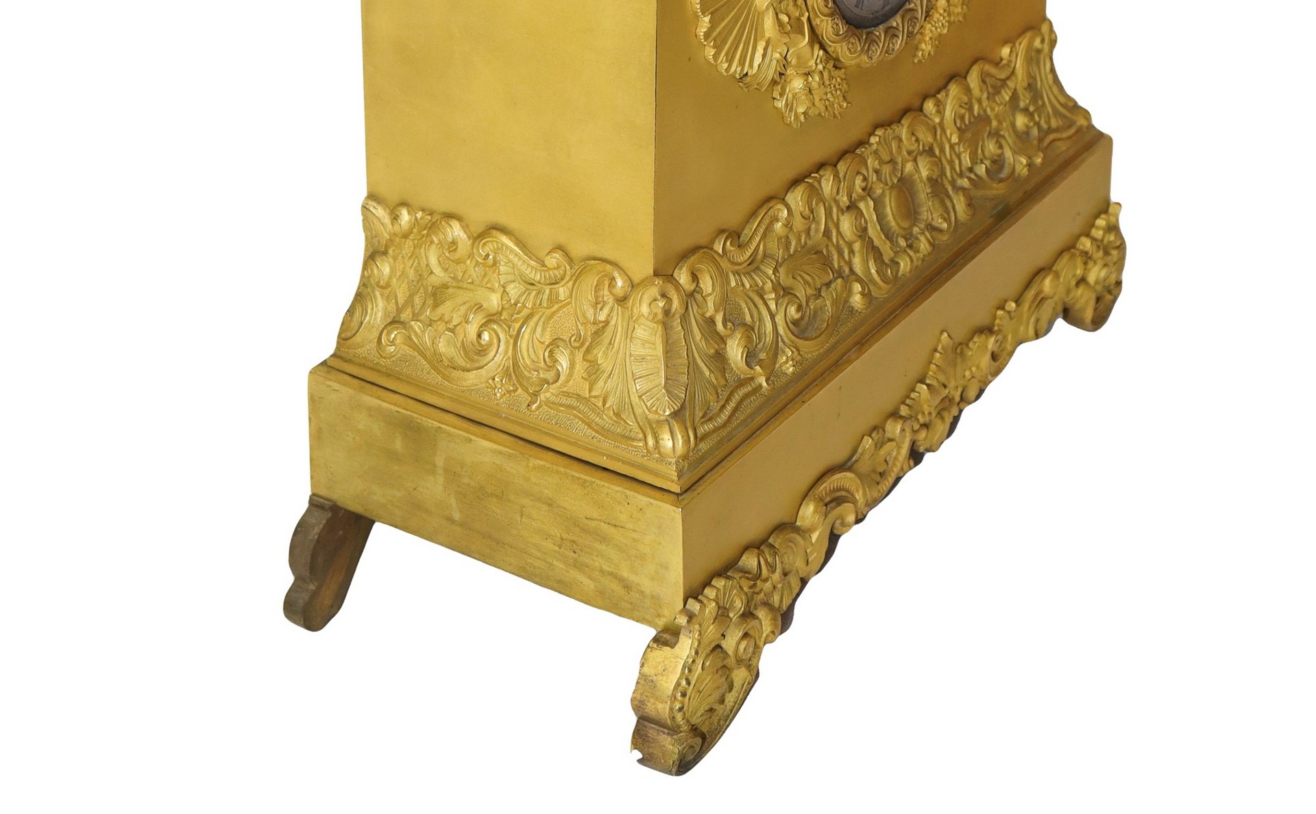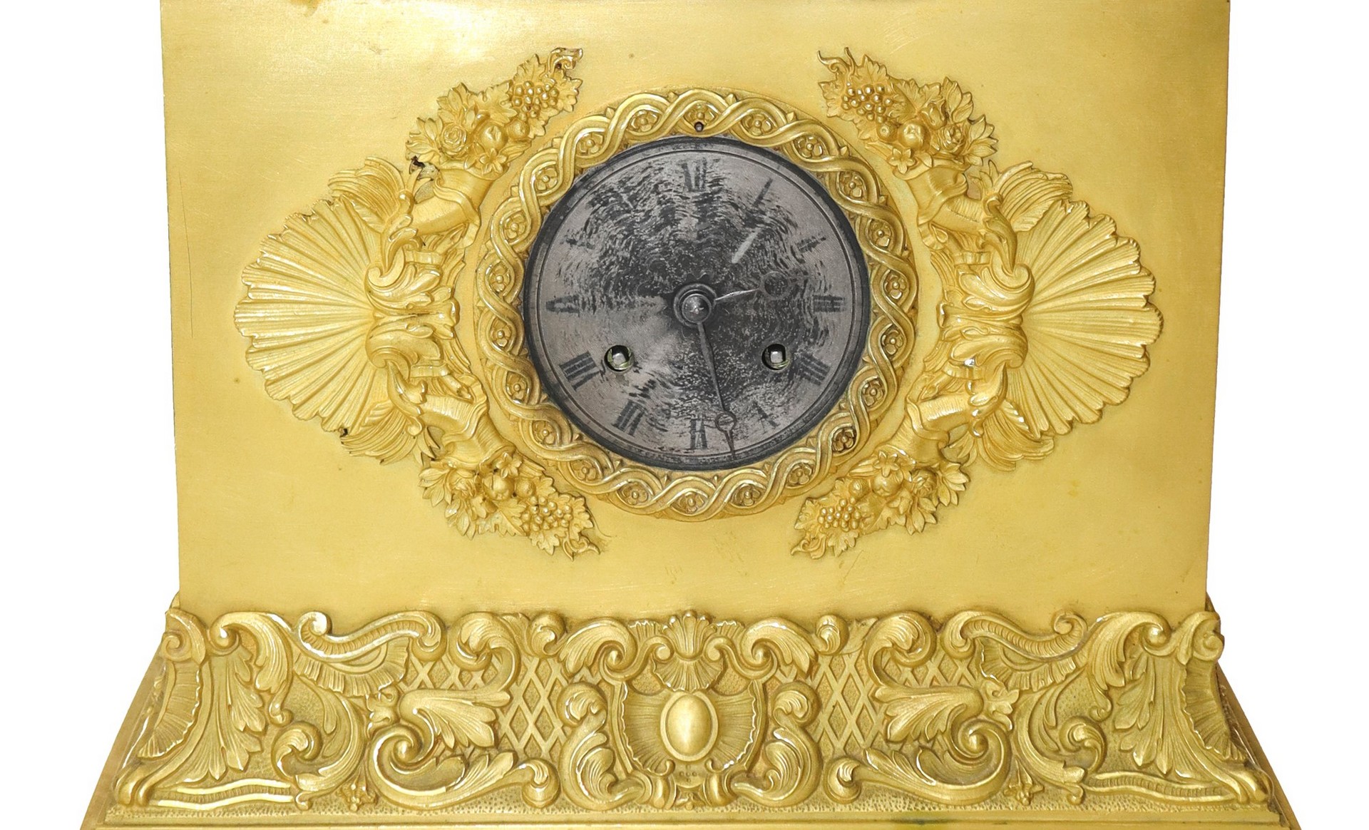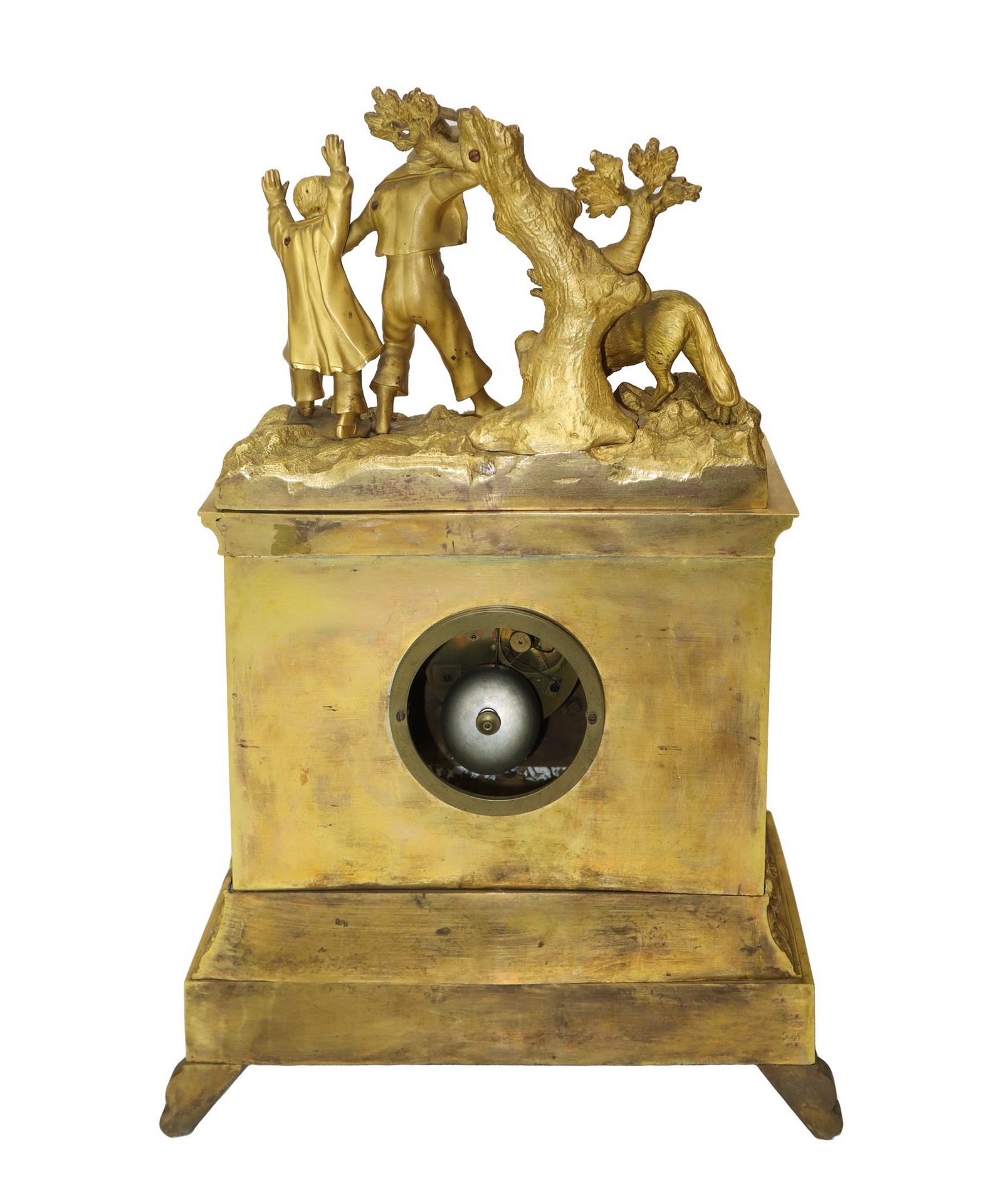 Orologio francese in metallo dorato, Mid 19th century h cm 50 x cm 35 x cm 15 Dorato a mercurio (ormouro). Sovrastante scultura raffigurante ragazzi con cane lupo. Provvisto di meccanismo funzionante ma da revisionare.Dorato a mercurio (ormouro). Sovrastante scultura raffigurante ragazzi con cane lupo. Provvisto di meccanismo funzionante ma da revisionare.