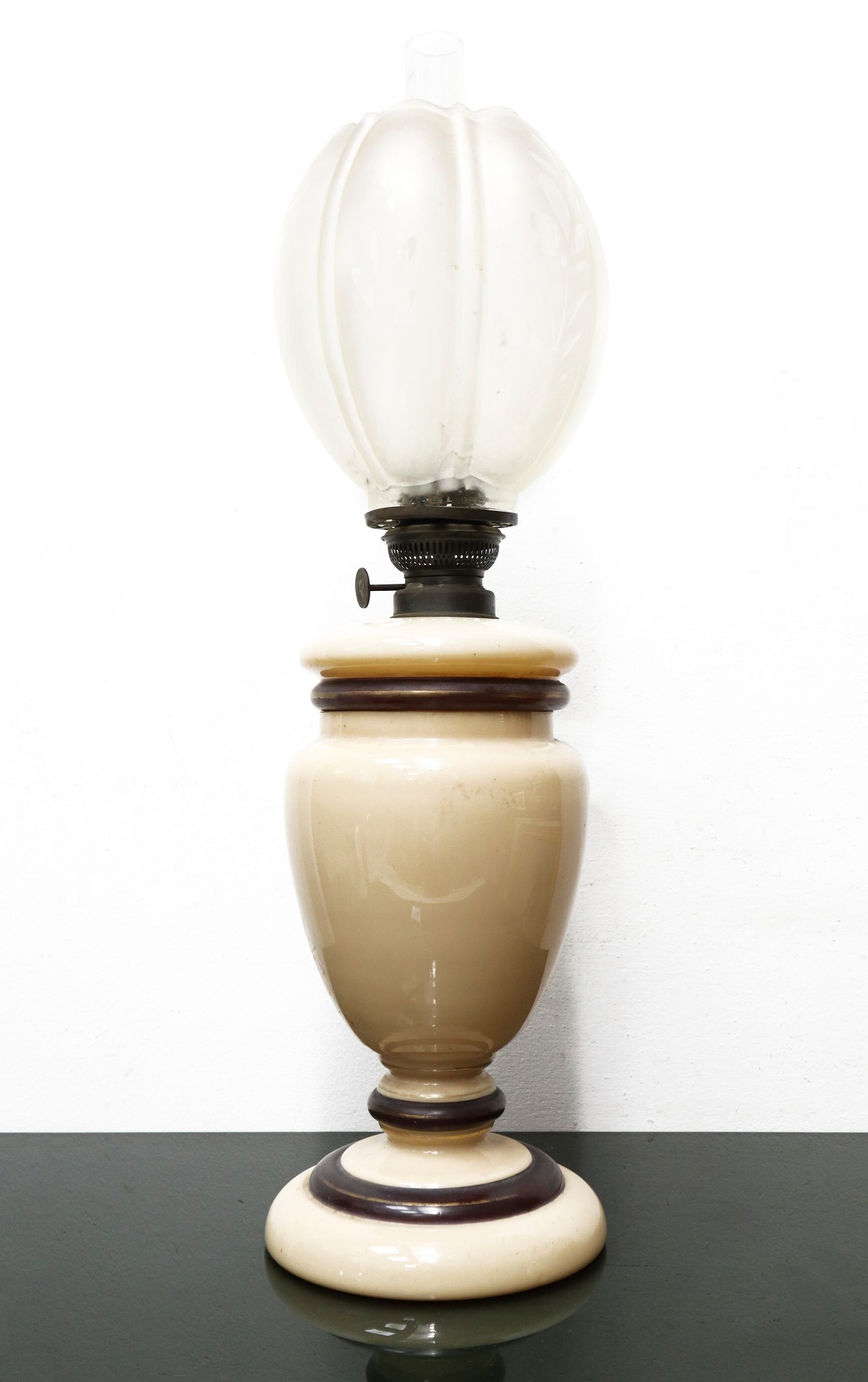 Lotto 57 | Lume a petrolio in opalina beige, nineteenth century