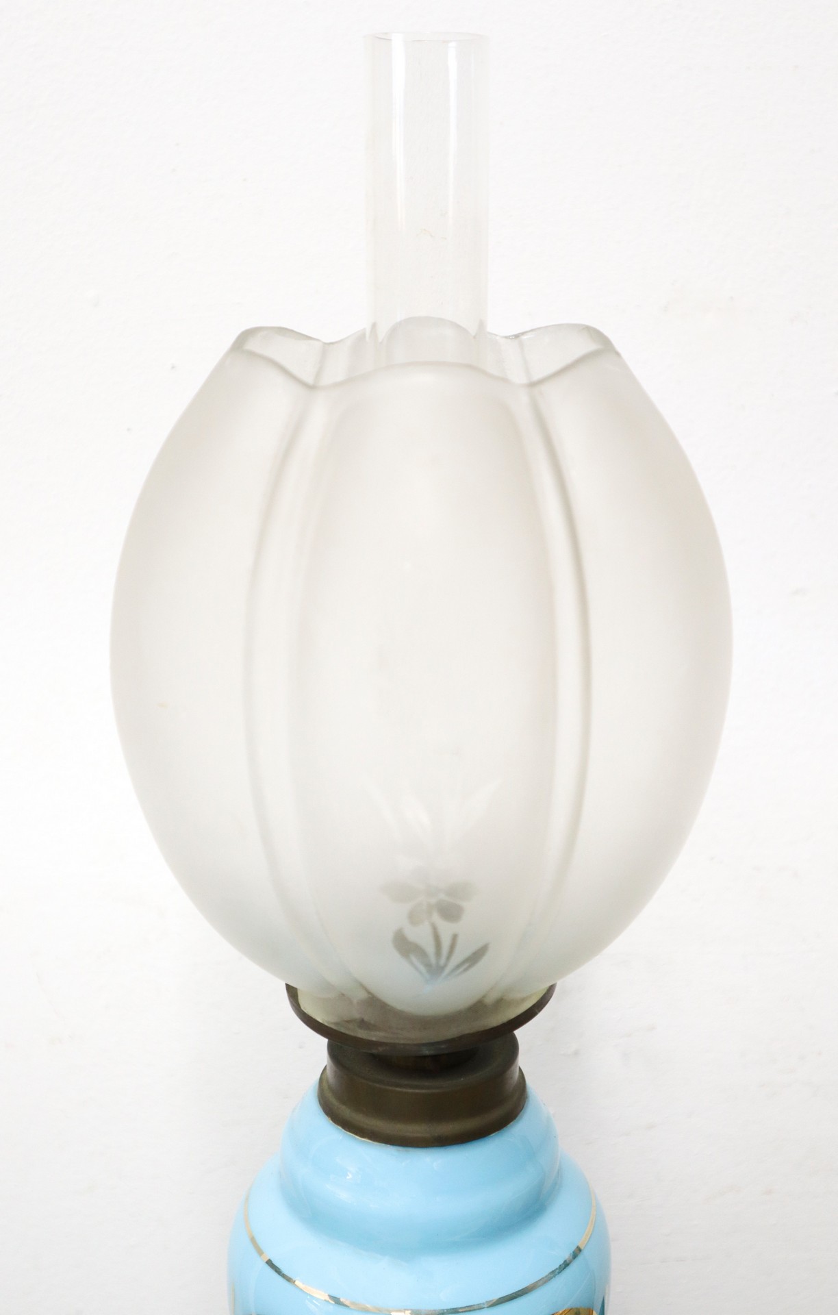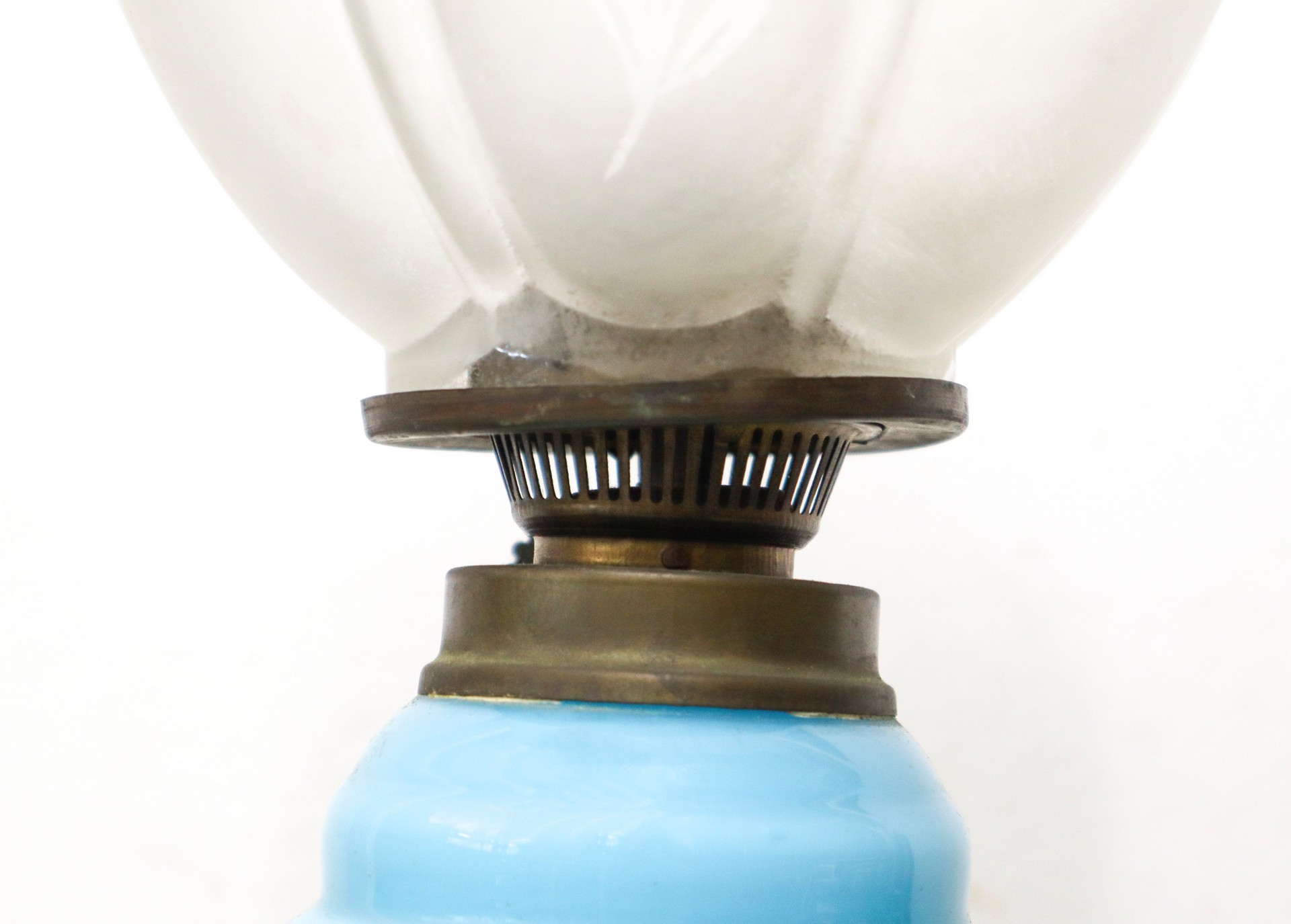Lume a petrolio in opalina azzurra, Late 19th century