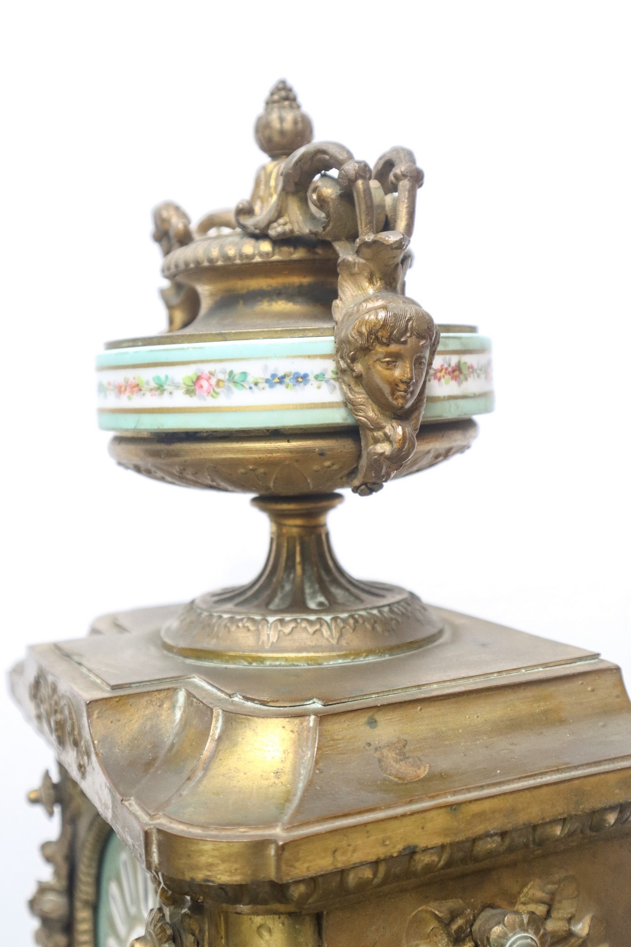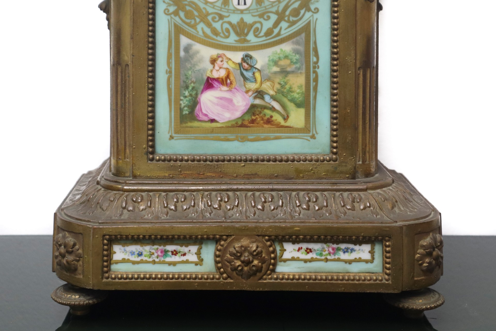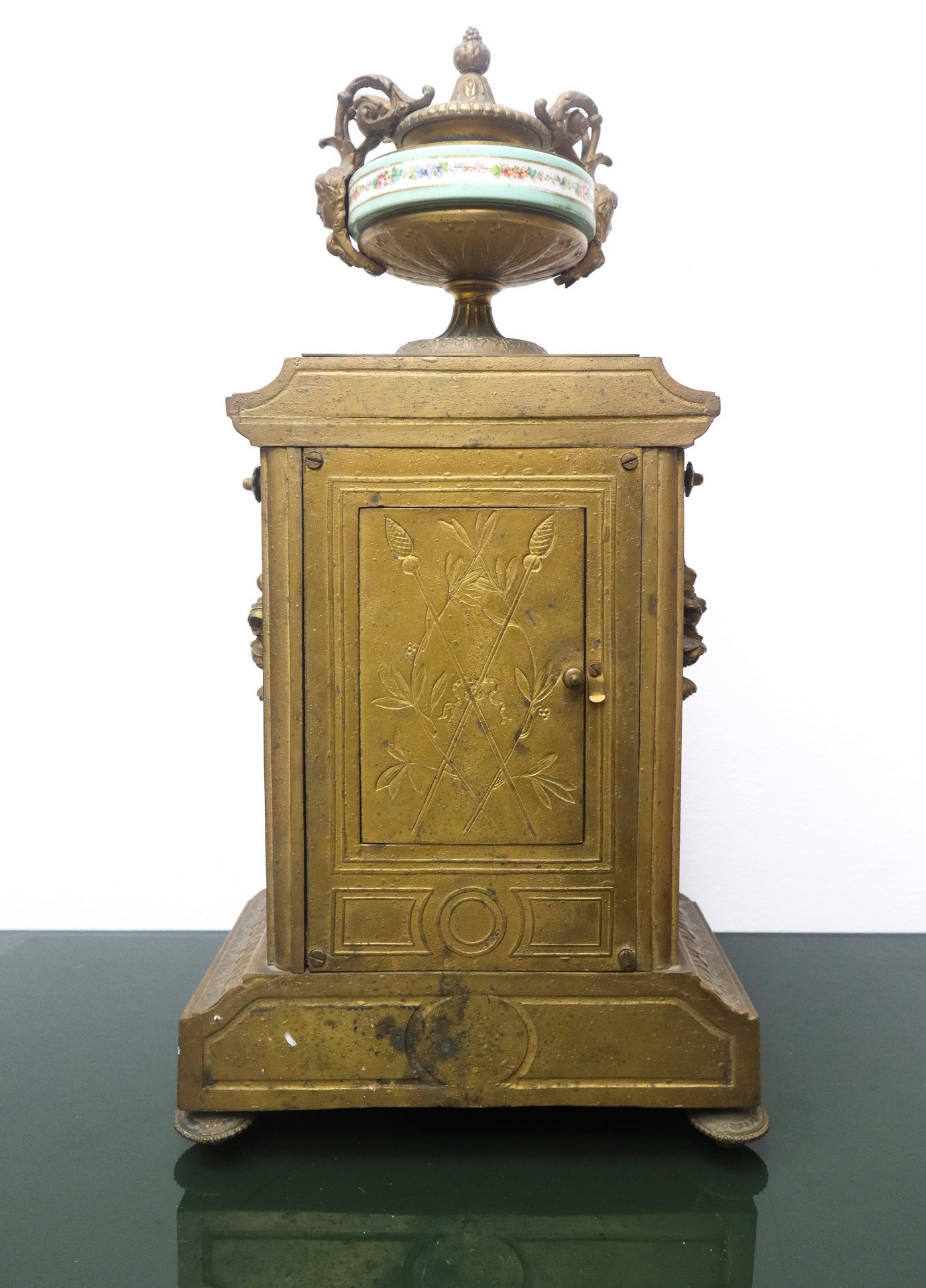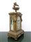 Orologio, Late 19th century. H cm 54 Struttura in metallo dorato con porcellane raffiguranti fiori, volatili e scene di genere. Da revisionareStruttura in metallo dorato con porcellane raffiguranti fiori, volatili e scene di genere. Da revisionare