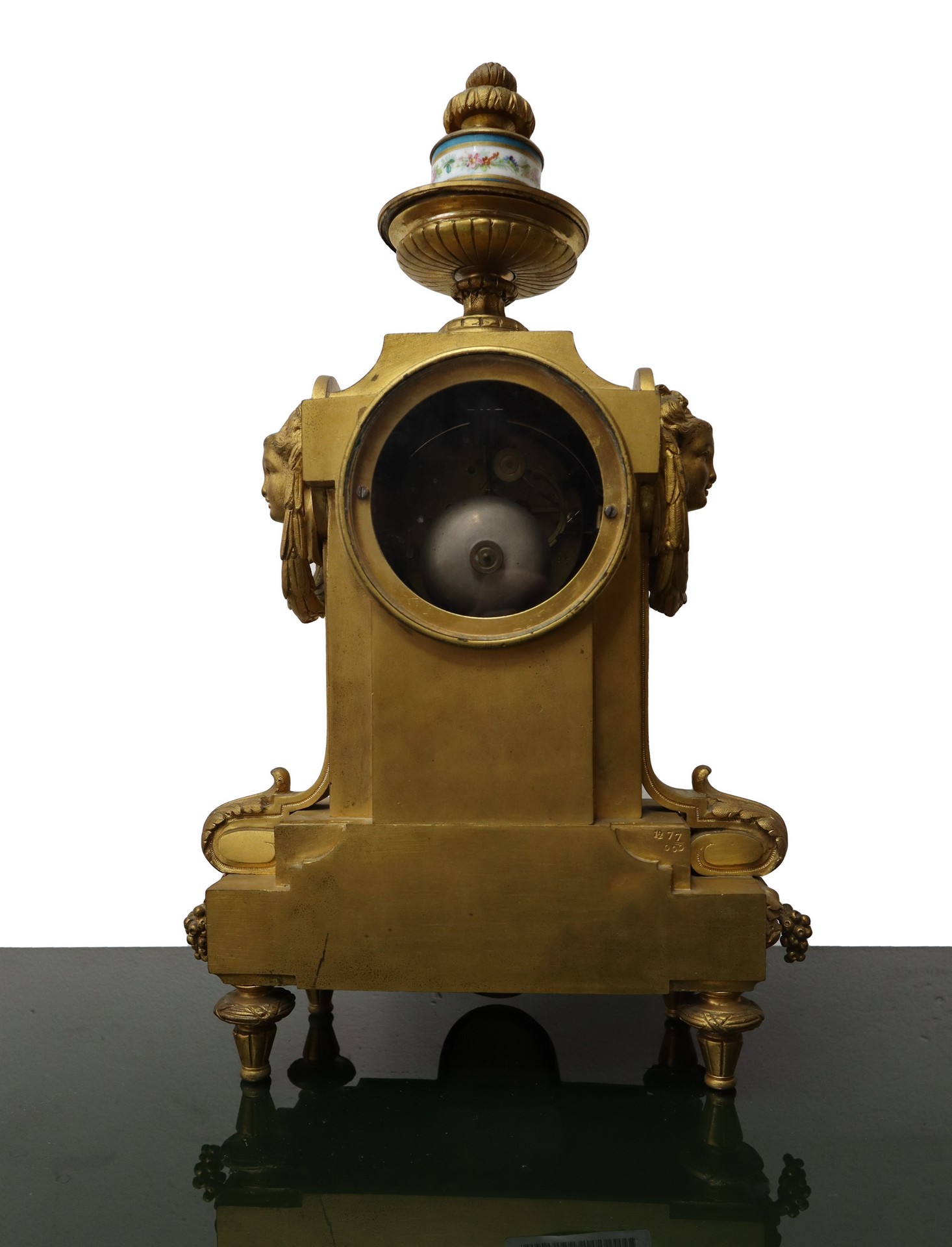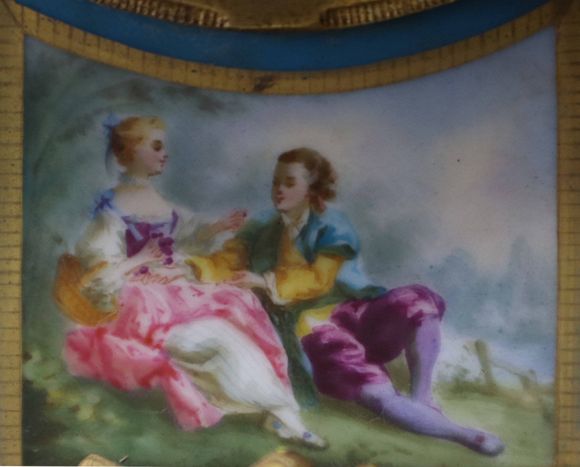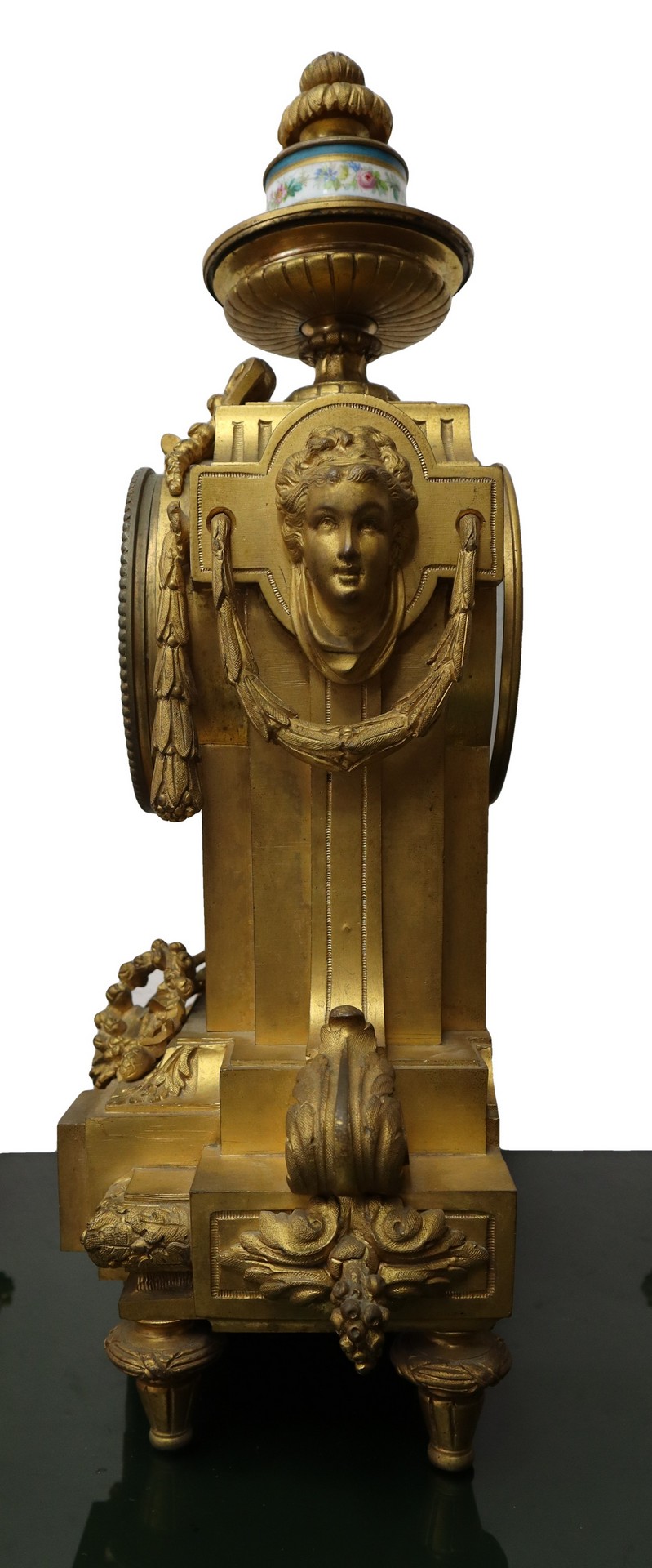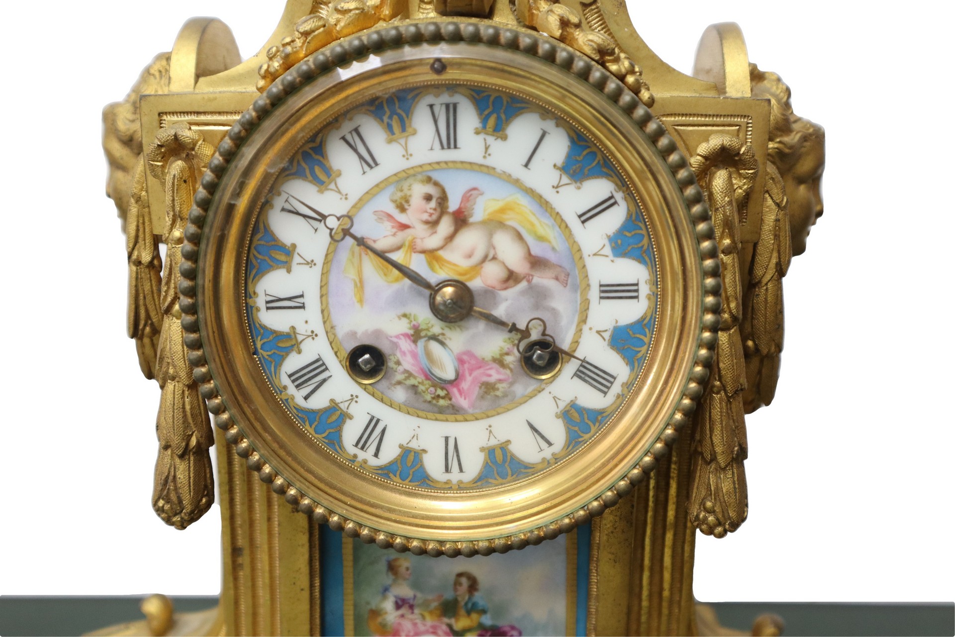 Trittico con orologio e coppia candelieri in bronzo dorato e porcellane miniaturizzate , Napoleon III, 19th century France