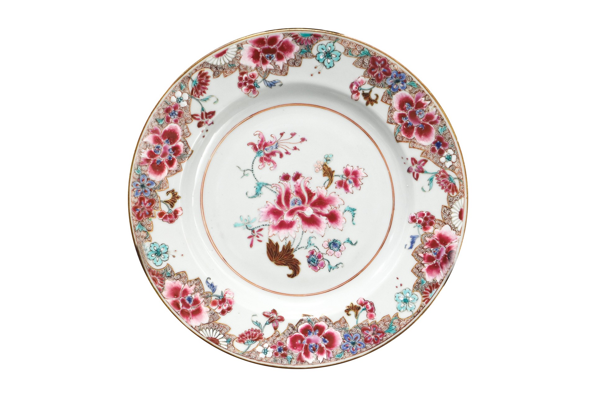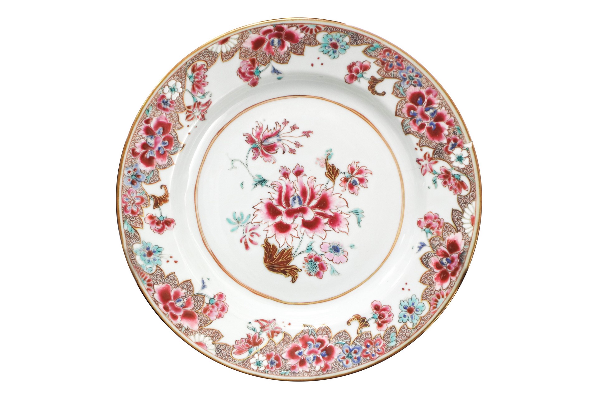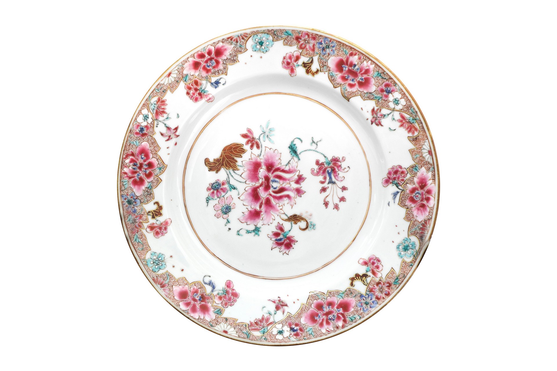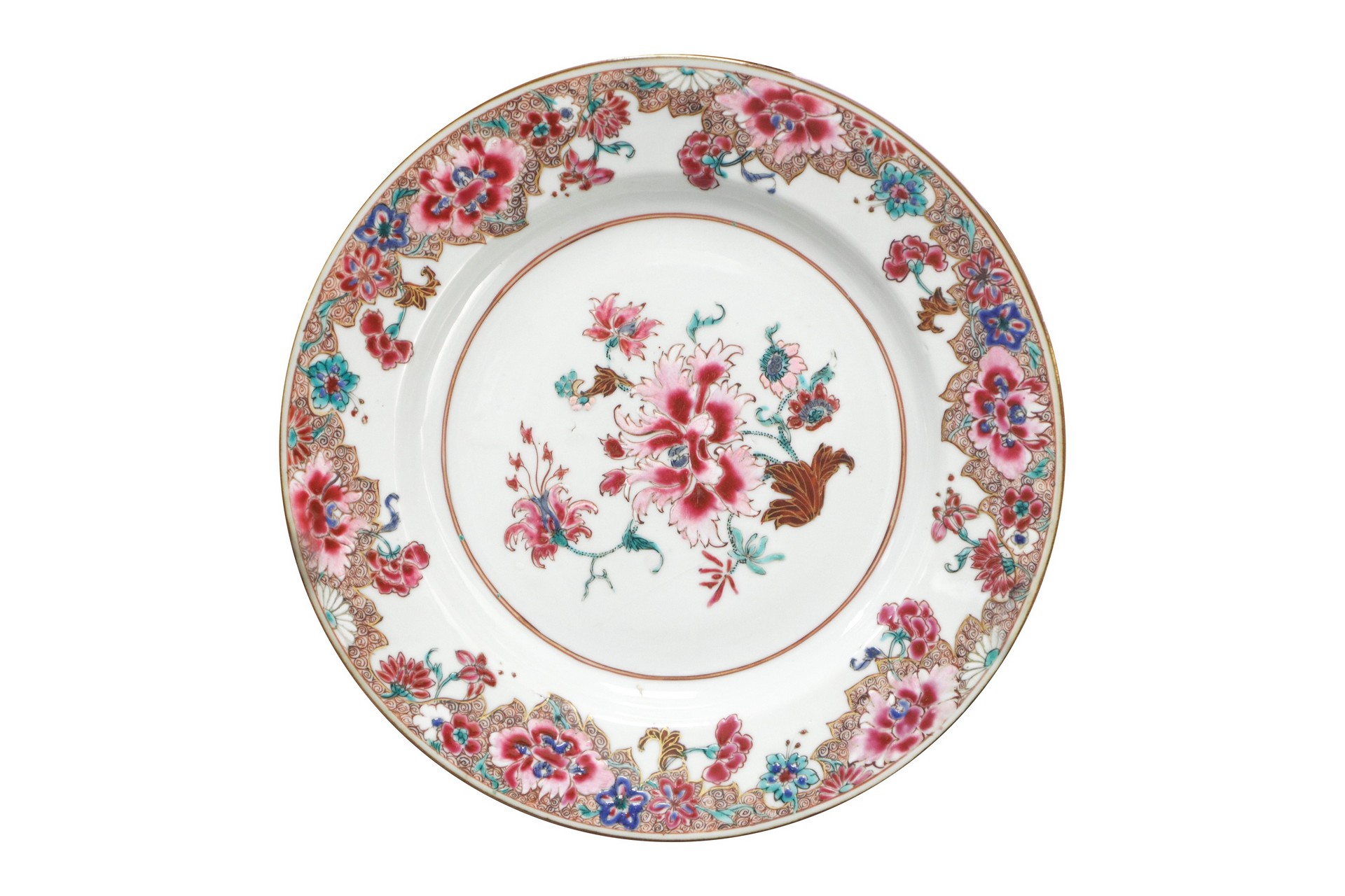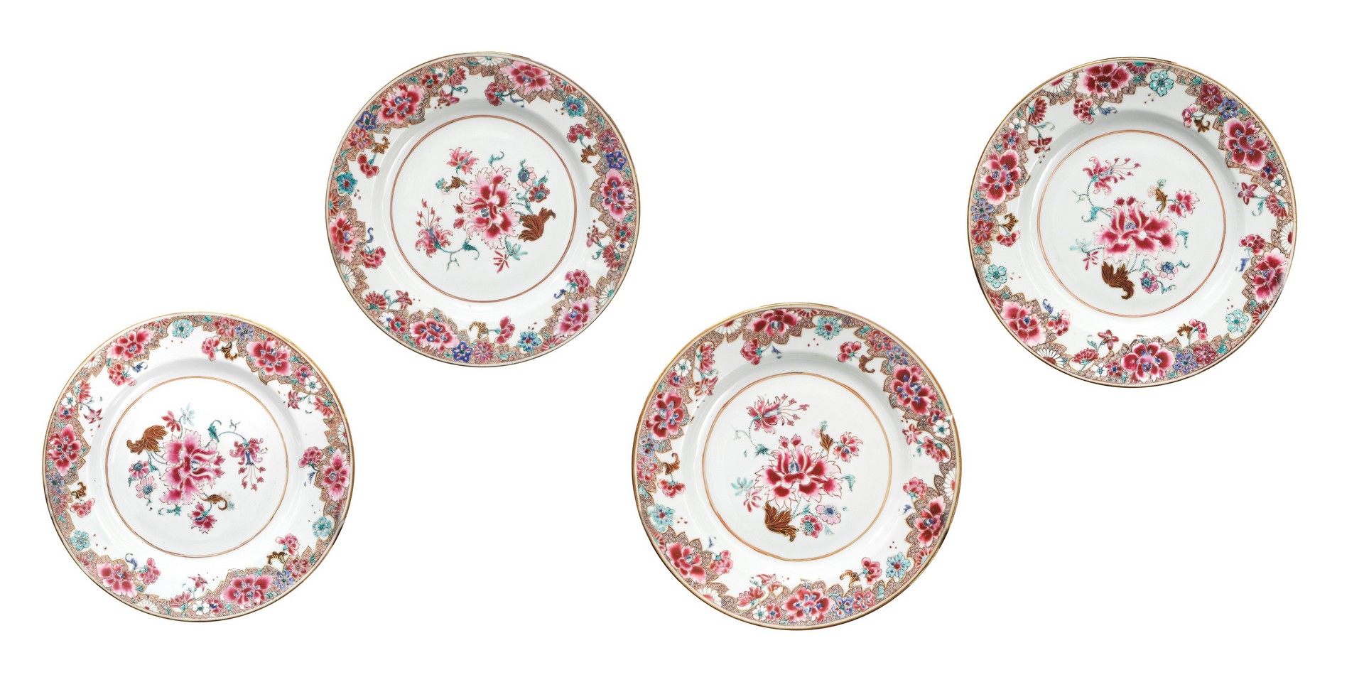 N.4 Piatti in porcellana canton, China, 18th century cm 23 Presenti filaturePresenti filature