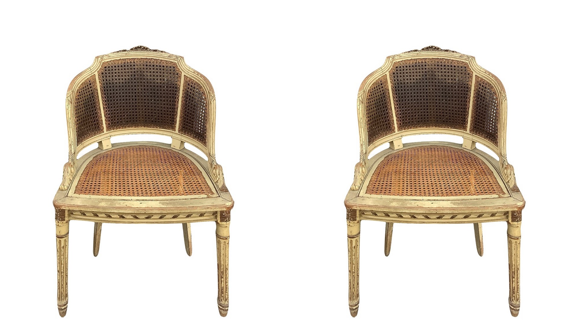 Coppia poltroncine laccate, Nineteenth century h cm 84x50x45 Con spalliera e piano in paglia di Vienna Con spalliera e piano in paglia di Vienna