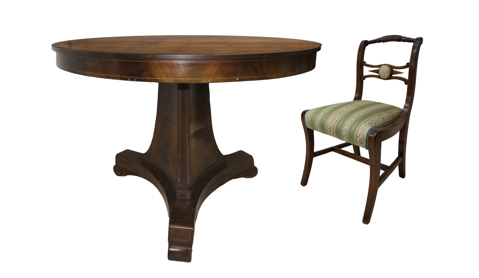 Lotto 115 | Tavolo rotondo in legno di mogano con n.6 sedie, nineteenth century