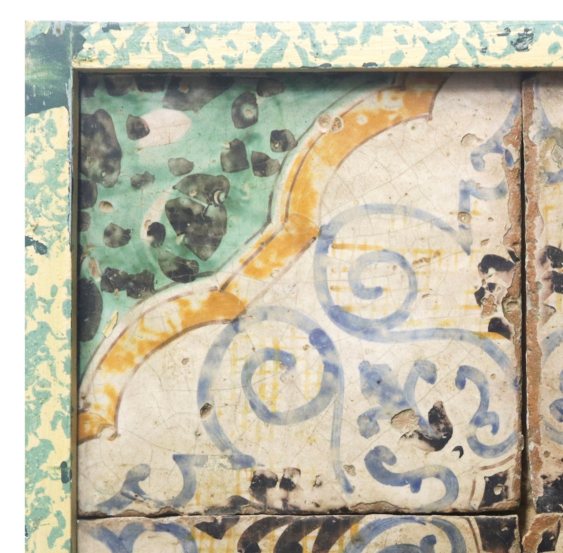 Composizione di N.4 Mattonelle in maiolica di Caltagirone, Early 20th Century