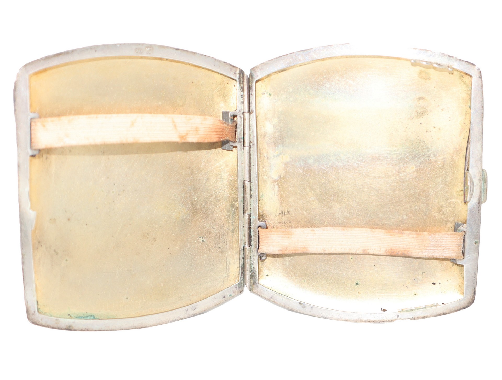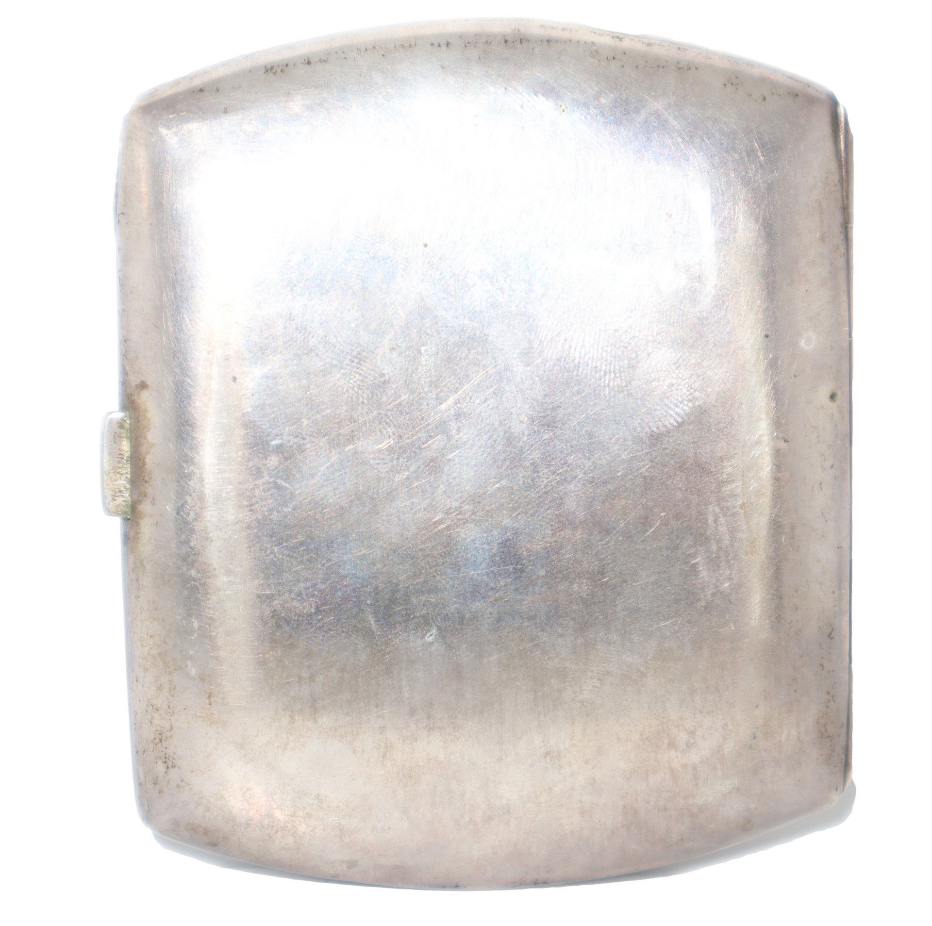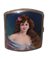 Portasigarette in argento con smalto sul coperchio raffigurante donna, Late 19th century h cm 9 x cm 7,5 Piccola sbeccatura alla basePiccola sbeccatura alla base