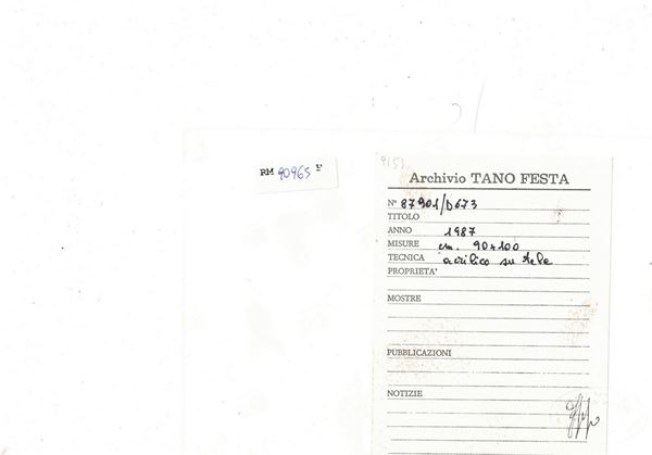 Tano Festa (Roma 2 novembre 1938-Roma 9 gennaio 1988) - Senza titolo , 1987 cm 90 x cm 100 Acrilico su tela Con archiviazione dello Studio Soligo
