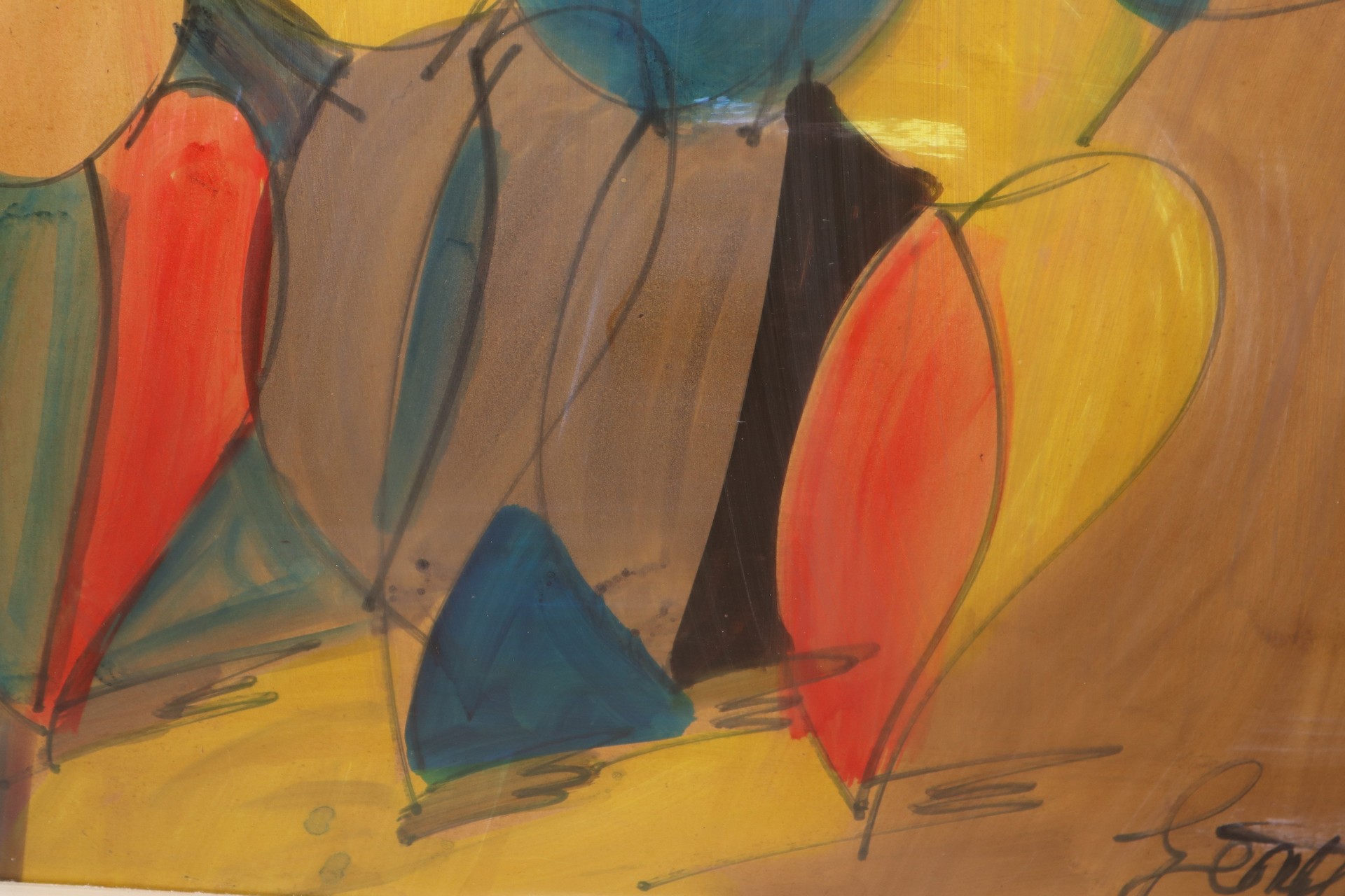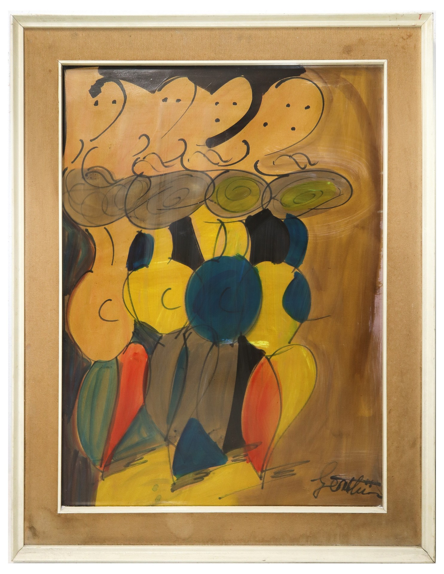 Aldo Gentilini (Genova 7 febbraio 1911-Volpeglino 10 agosto 1982) - Composizione astratta cm 70 x cm 50, in cornice cm 84 x cm 64 acrilico su cartoncino Firmato in basso a destra